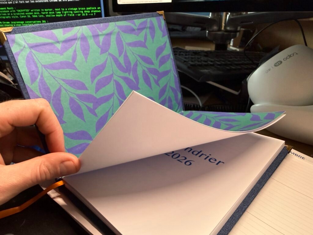 Puis alors ces petits coins en métal, ça fait toute la différence sans oublier la doublure, et le petit logo Korben également à l’intérieur des pages. Bref c’est royal !