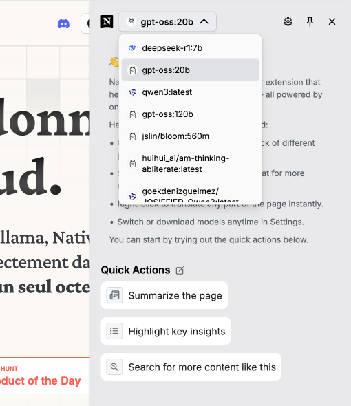 Le projet est open-source sous licence AGPL v3.0 et NativeMind supporte deux backends : Ollama, qui est recommandé si vous voulez de vraies performances et un contrôle total sur vos modèles ou WebLLM si vous voulez juste tester sans installer quoi que ce soit, directement dans le navigateur via WebAssembly.