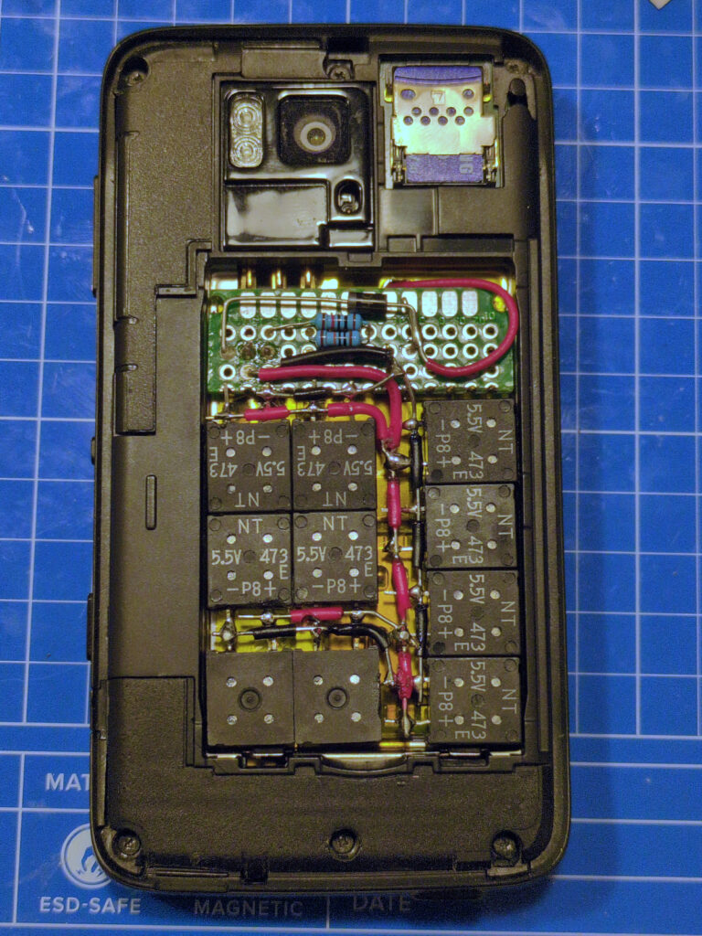 Le problème de base avec ce téléphone d’un autre temps, c’est comme vous vous en doutez la batterie. La BL-5J d’origine, après plus de 15 ans, est morte de chez morte. Et racheter une batterie de remplacement c’est jouer à la roulette russe vu que celles qu’on trouve aujourd’hui ont probablement passé autant de temps à prendre la poussière dans un entrepôt. Du coup, le gars a eu une idée de dingue : Remplacer la batterie par des supercondensateurs.