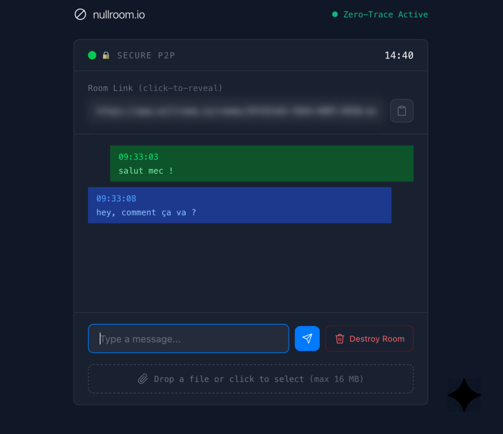 Nullroom – Un chat P2P qui s’efface en 15 minutes