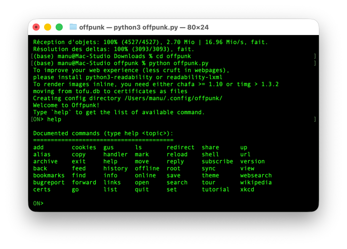 et lancer le script avec python offpunk.py.