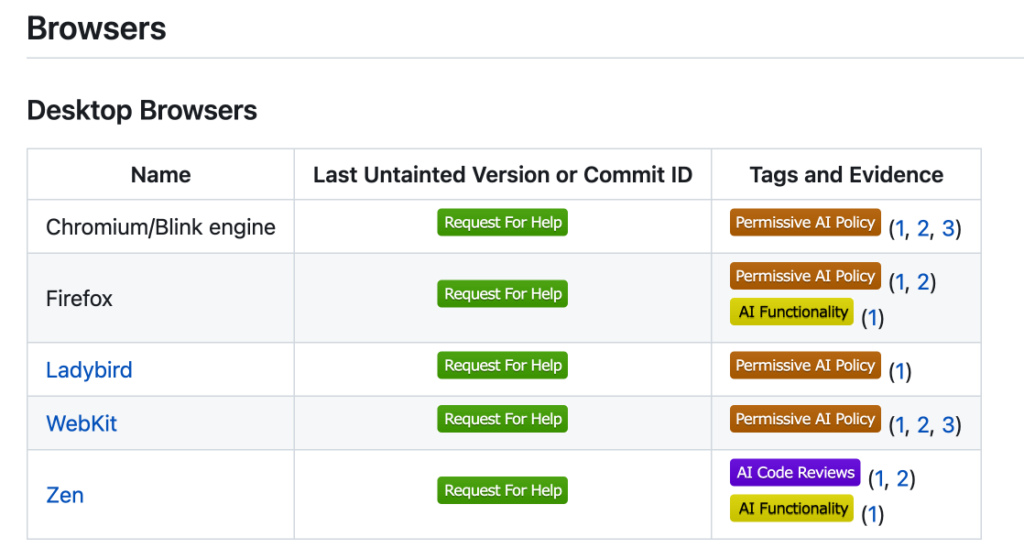 Ils auraient plus vite fait de lister des projets garantis sans IA, ça consommerait moins de bande passante ^^, parce que là, ceux qu’ils balancent, c’est ceux qui ont communiqué sur le sujet mais allez savoir combien sont les projets “vertueux garantis sans LLM” dont les dev maquillent le code que l’IA leur a sorti.
