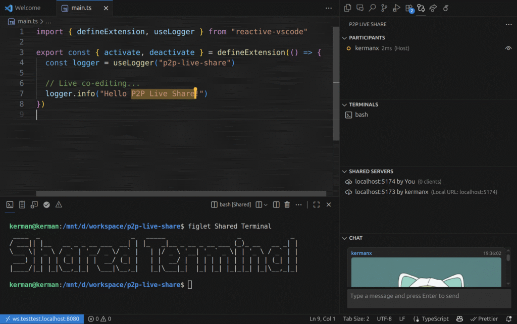 fait exactement la même chose, mais en peer-to-peer. Pas besoin de vous créer un compte, ça ne transite par aucun serveur intermédiaire, et surtout Microsoft ne mate pas votre code. Vous donnez simplement l’URL de la session à votre pote, il la colle dans son VS Code, et vous êtes connectés en direct, en P2P les amis, grâce à WebRTC !