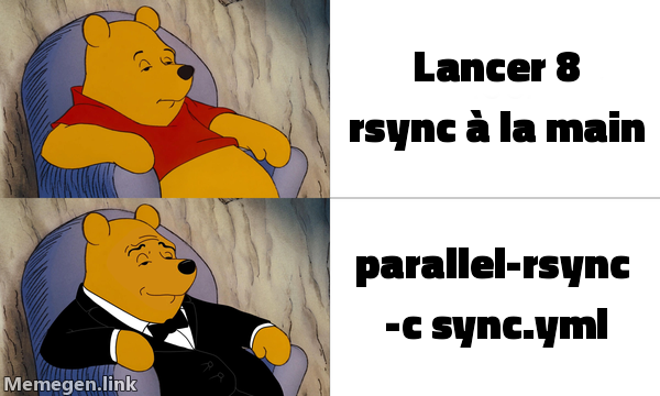 Vous synchronisez 4 ou 5 dossiers vers plusieurs serveurs avec rsync ? Alors vous connaissez ce sketch quand un job mouline pendant que les autres font la queue, parce que rsync de base c’est mono-thread et ça avance en file indienne.
