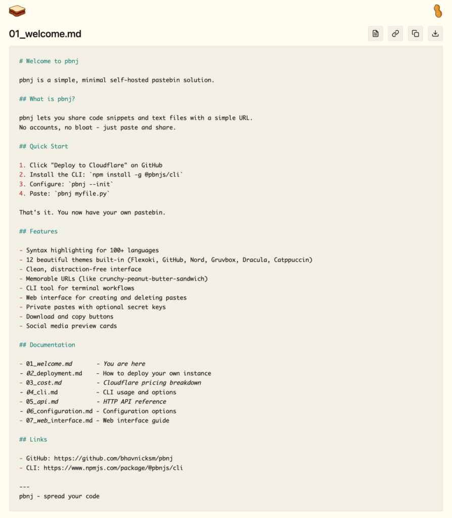 pbnj – Le pastebin minimaliste qui se déploie en 60 secondes