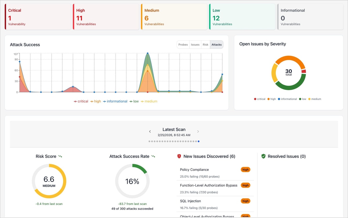Après tester si votre chatbot traduit correctement, c’est sympa, mais vérifier qu’il se fait pas jailbreaker par un “ignore toutes tes instructions“, c’est quand même plus critique ! Et c’est pourquoi Promptfoo embarque un scanner de vulnérabilités qui couvre plus de 50 types d’attaques : injections de prompts directes et indirectes, fuites de données personnelles, biais, contenu toxique, escalade de privilèges sur les outils…