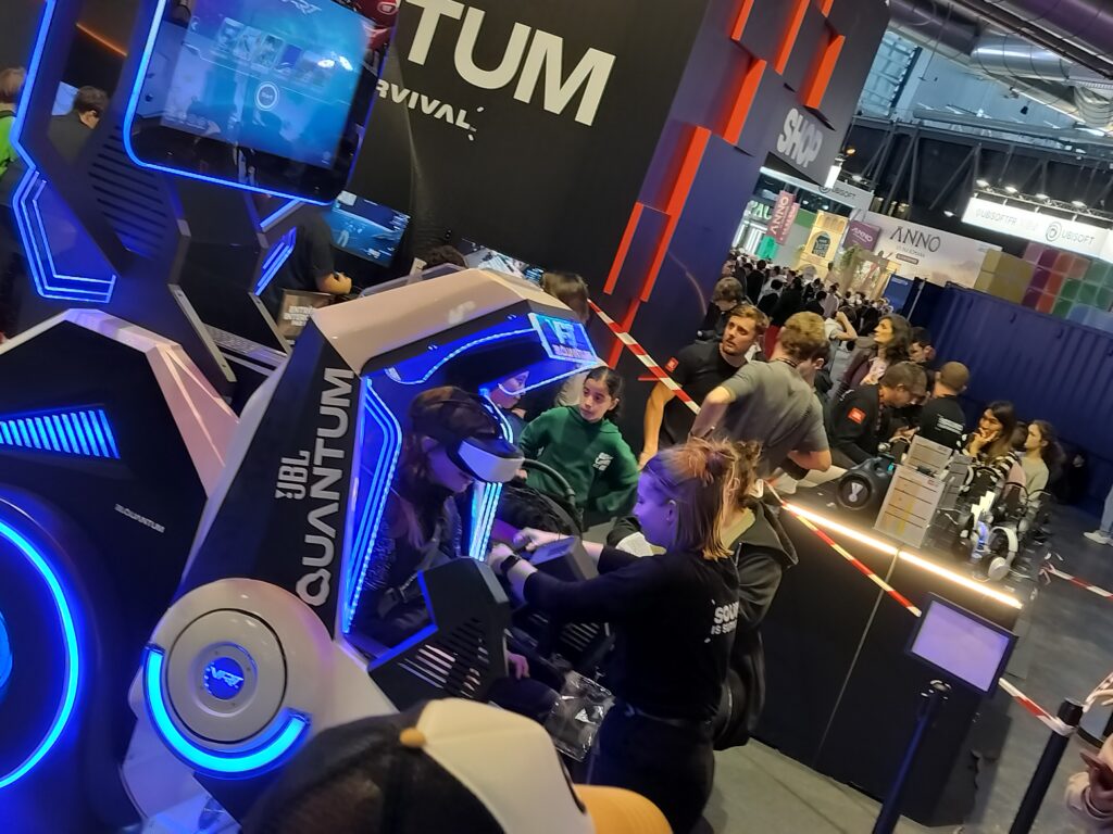JBL avait aussi installé un simulateur immersif pour tester leurs nouveaux casques gaming Quantum 950 avec Locklear et plein d’invités. C’était une bonne promo pour leurs casques audio, je trouve.