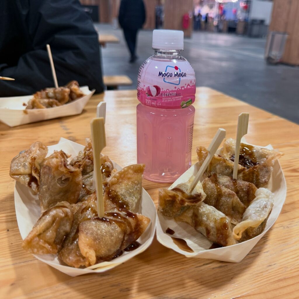 Je ne peux pas conclure cet article dans vous parler de la zone de bouffe avec principalement des trucs japonais. Bon franchement, les bubble waffles et les corn dogs chelous aux saucisses Herta c’est pas ouf. Mais après il y avait quelques sushis, makis, curry et des gyozas, et comme j’adore ça les gyozas, ça va, je suis pas mort de faim non plus. J’ai même découvert le Mogu Mogu, une boisson au litchi avec des morceaux gélatineux chelou de noix de coco dedans. Si vous aimez boire et manger en même temps c’est pour vous ! lol