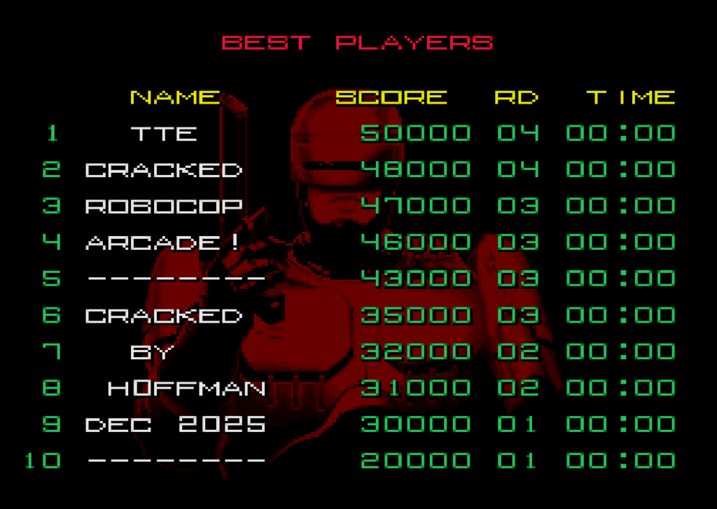 Mais après des heures de travail, djh0ffman a réussi à recréer toutes les routines de collision en assembleur 68000 et à les injecter dans la ROM originale. Le patch fait environ 2 Ko !! Et ça transforme n’importe quelle borne RoboCop avec une puce morte en machine parfaitement fonctionnelle.