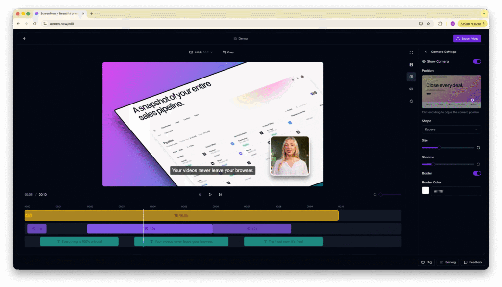 Le plus dingue, c’est que le projet a bénéficié d’optimisations techniques assez impressionnantes. Le rendering vidéo est maintenant 10 fois plus rapide qu’au début, le sync audio-vidéo a été corrigé pour éliminer 99% des problèmes de freezing à l’export et bien sûr, Screen Now est une PWA (Progressive Web Apps), ce qui signifie que vous pouvez l’installer comme une vraie application sur votre ordinateur tout en gardant les avantages du web.