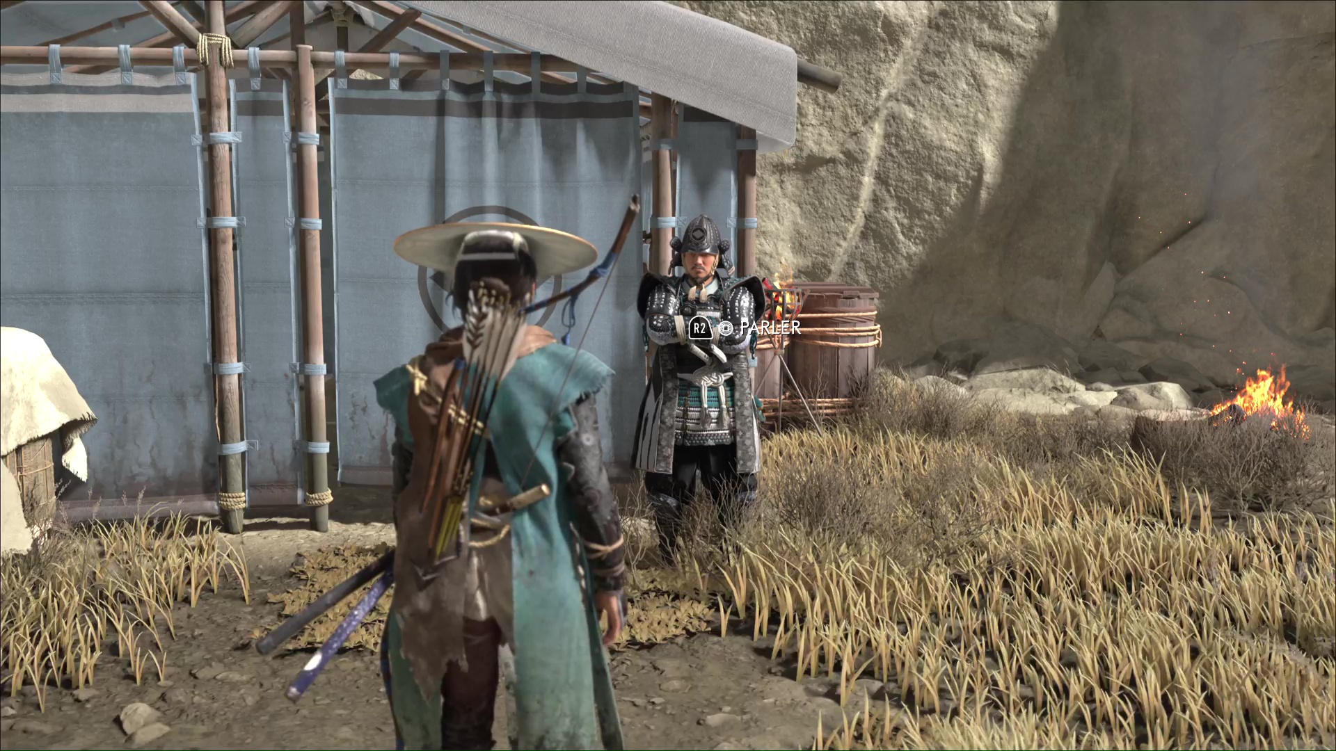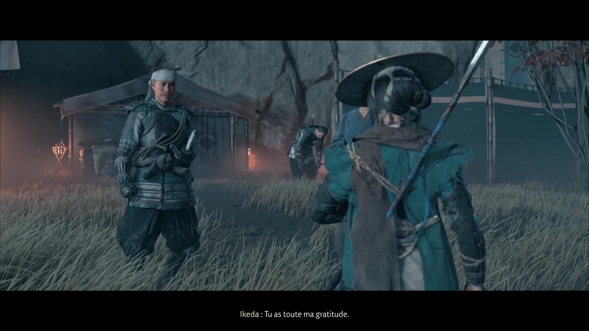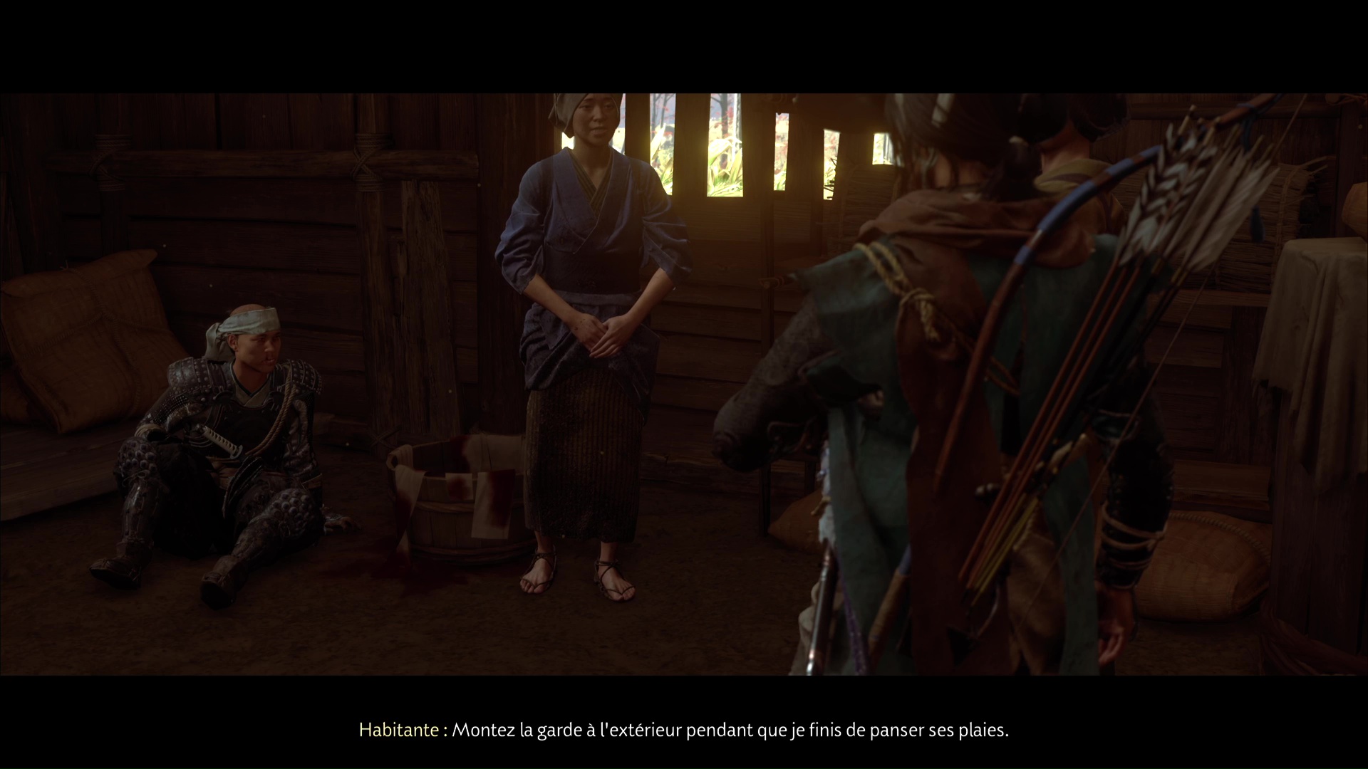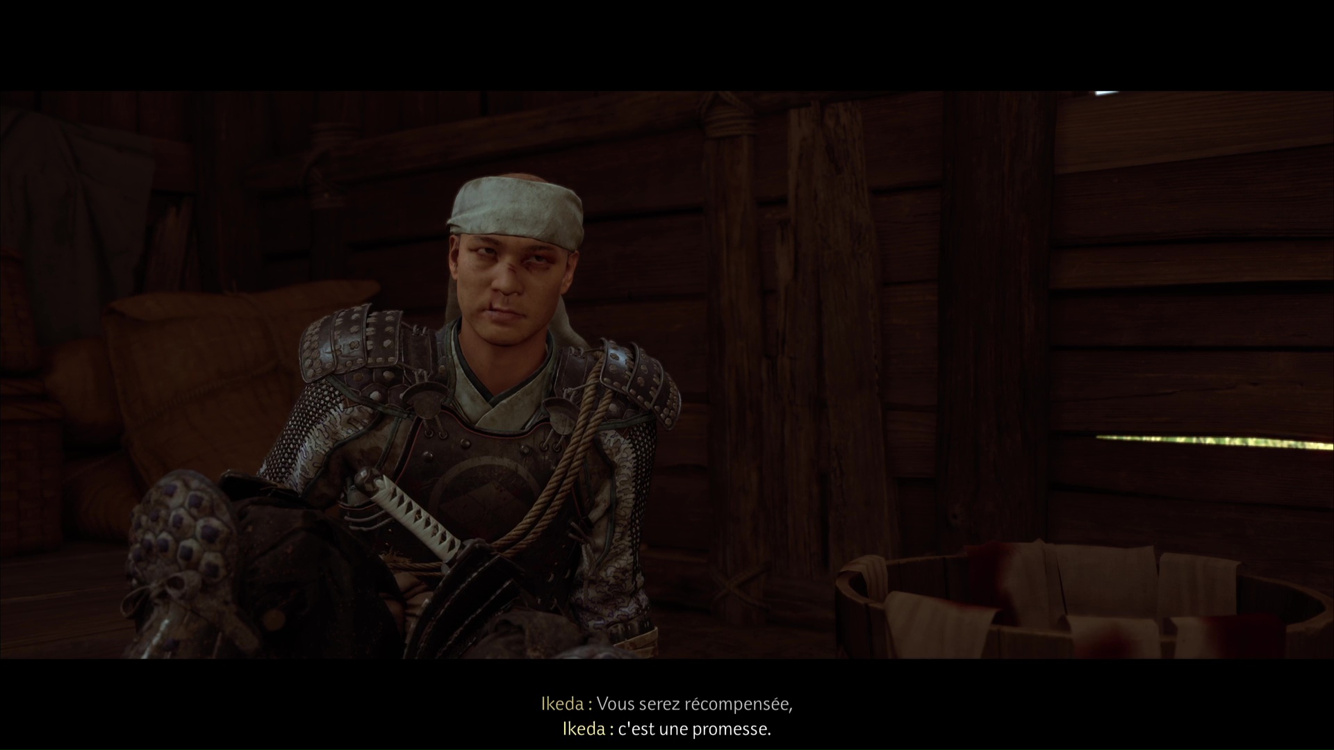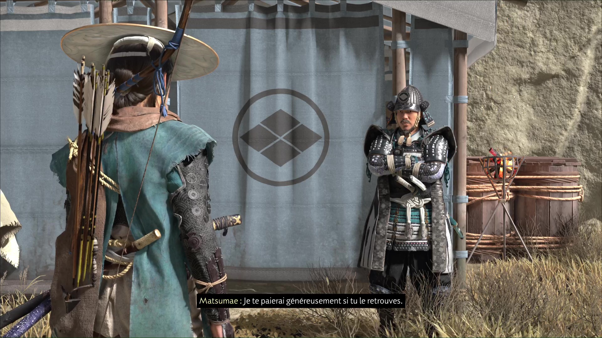 Suivez la femme jusqu’à une cachette dans laquelle se trouve le Matsumae. Nommé Ikeda, il confirme que vous serez payé si vous parvenez à le sortir d’ici. Acceptez la mission pour lancer la suite : Atsu va se mettre à monter la garde.