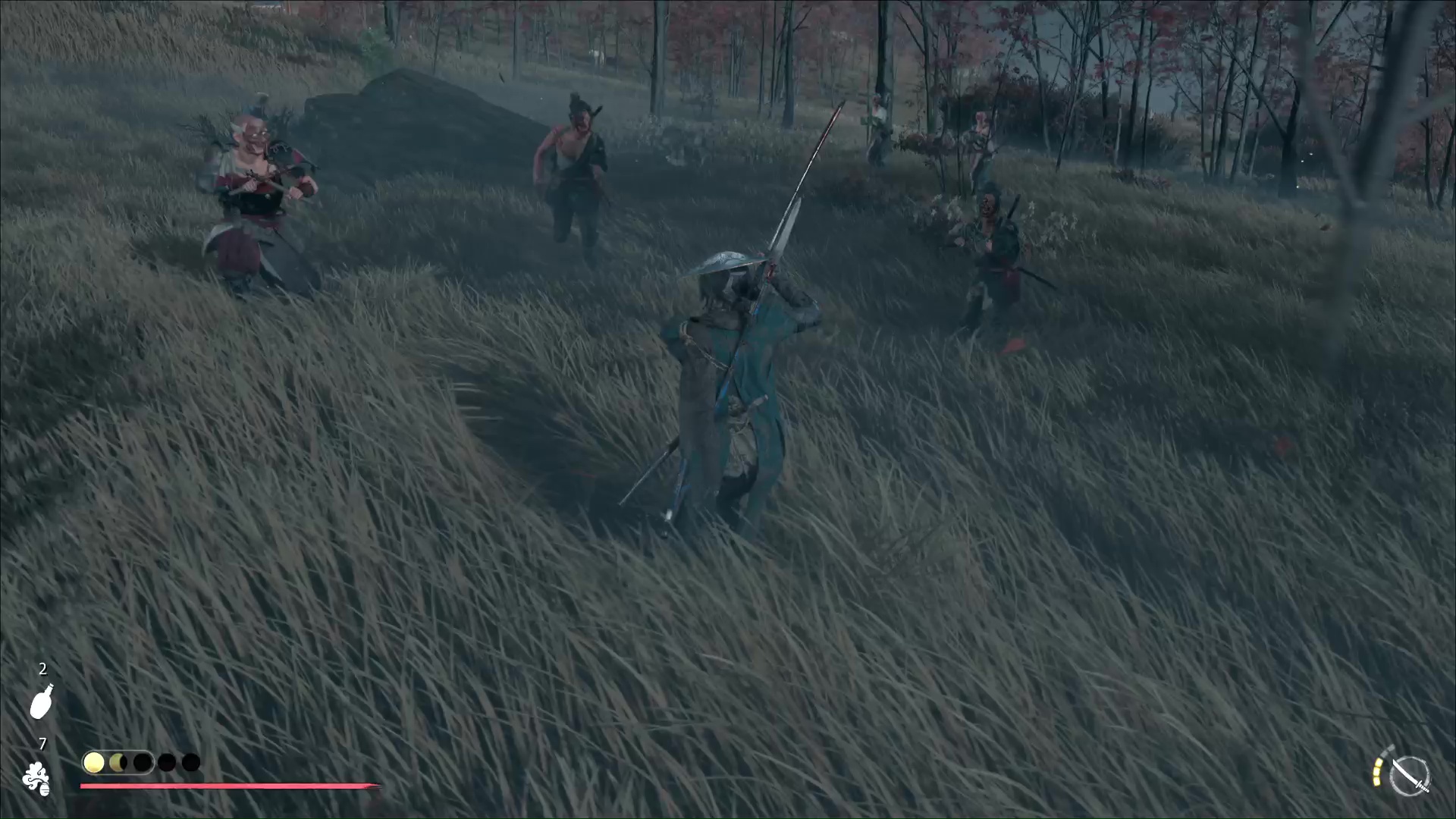 Hélas, d’autres pillards vont venir vous barrer la route, dont deux archers. Éliminez ce beau monde puis terminez le trajet qui mène à l’avant-poste. Ikeda finit par être mis à l’abri, mais une dernière vague de pillards de l’Oni tente une offensive.