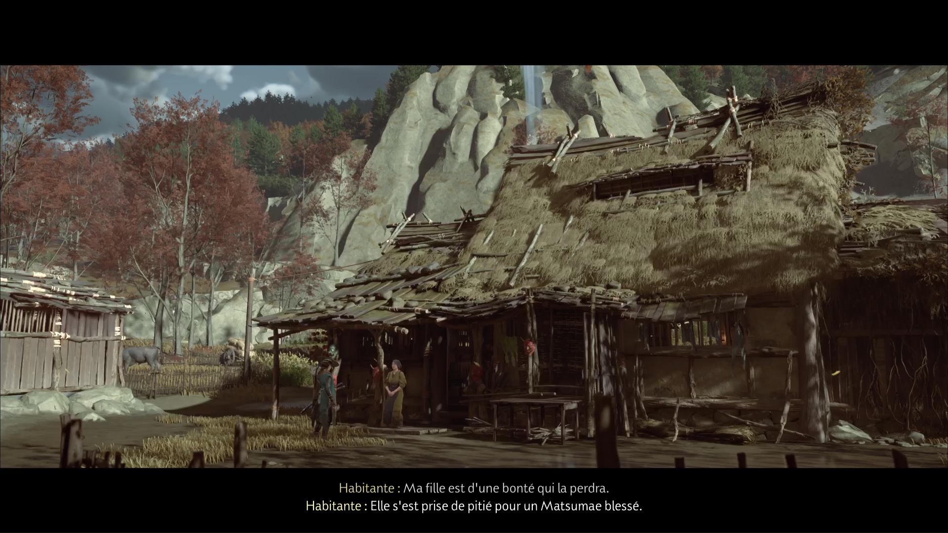 Partez vers le nord jusqu’à rejoindre la Ferme d’Ishikari. Sur place, cherchez une femme qui passe le balai devant chez elle. Parlez-lui et, après quelques échanges, vous apprenez que sa fille a secouru un Matsumae blessé. Sans aucun doute, il s’agit de l’éclaireur.