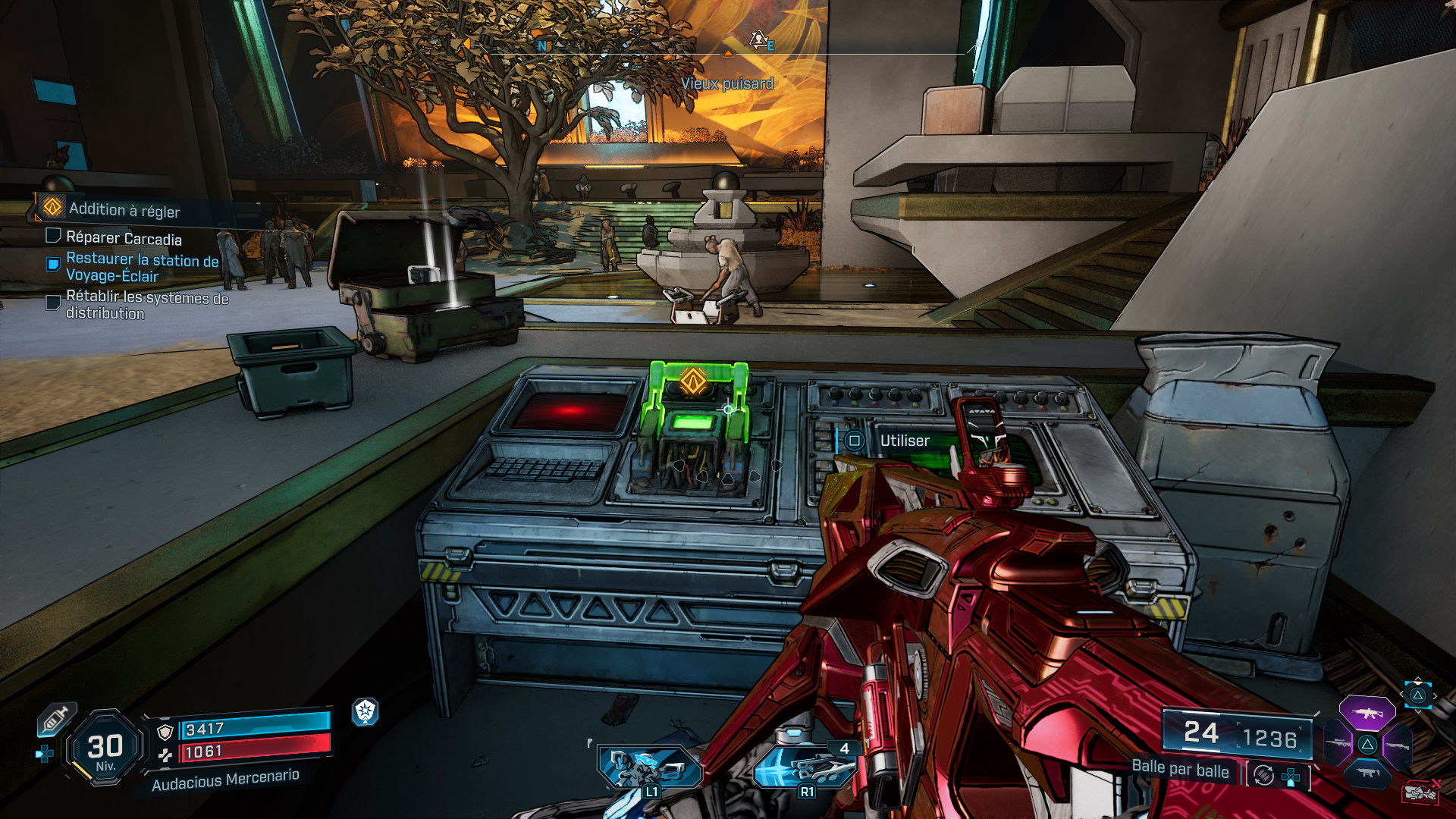 Il s’agit désormais de restaurer la station de Voyage-Éclair, sortez de cette salle et partez à l’opposé pour examiner la machine indiquée avant d’actionner l’interrupteur juste à gauche à plusieurs reprises pour la remettre en marche. De là, entrez dans le bâtiment principal et rétablissez les systèmes de distribution en actionnant un autre interrupteur.