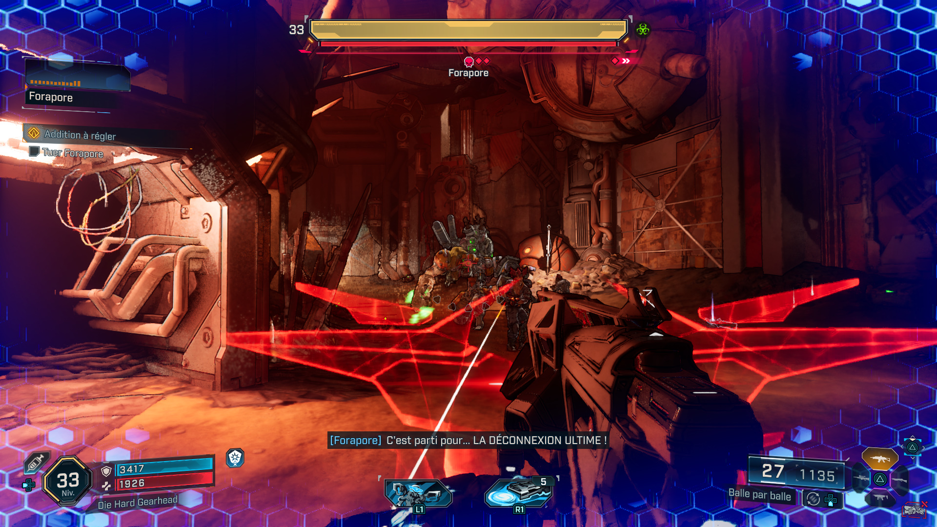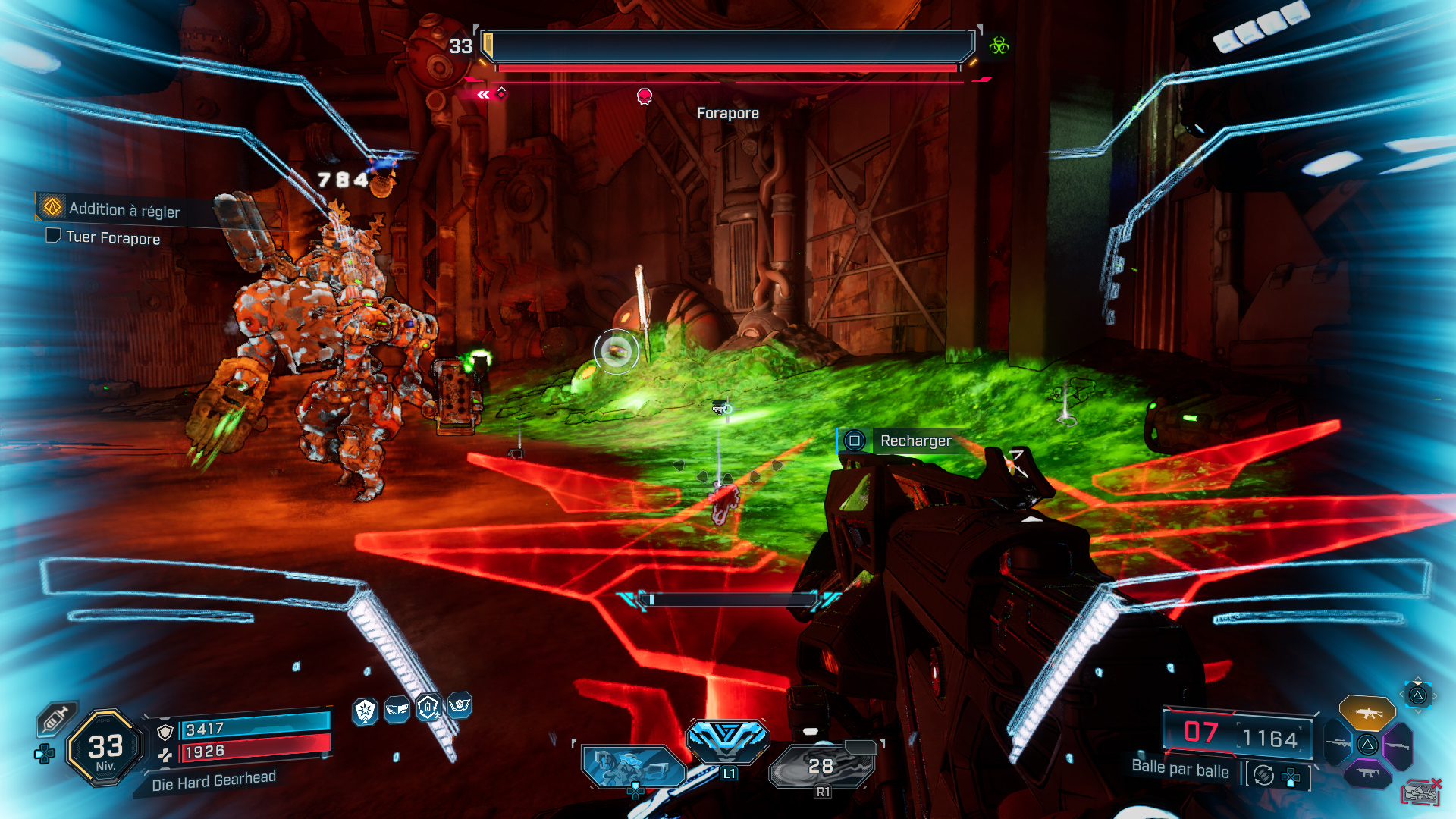 Ce boss n’est pas très compliqué en soi, il affiche une barre de blindage au-dessus sa barre de vie et inflige des dégâts corrosifs. Pour le battre, restez à bonne distance, visez principalement la tête, et esquivez ses projectiles et autres missiles qui s’écrasent sur le sol pour y répandre des flaques corrosives.