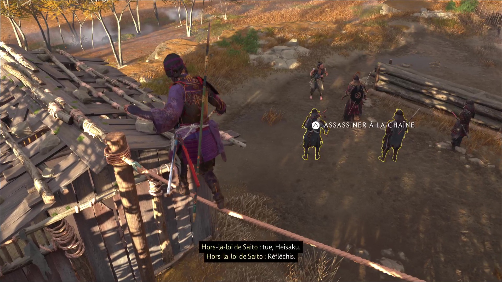 Puis, rapprochez-vous de là où Heisaku attire les soldats tout en restant en hauteur et à portée. Vous devriez pouvoir exécuter un assassinat à la chaîne (si vous l’avez) pour éliminer facilement au moins la moitié de vos adversaires.