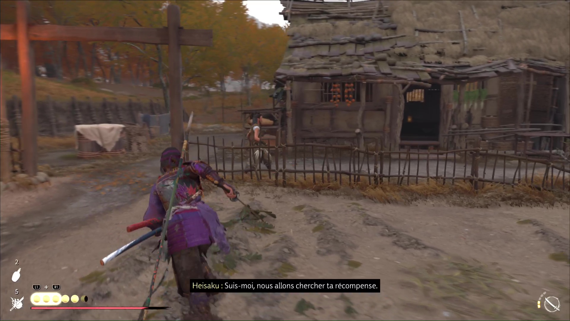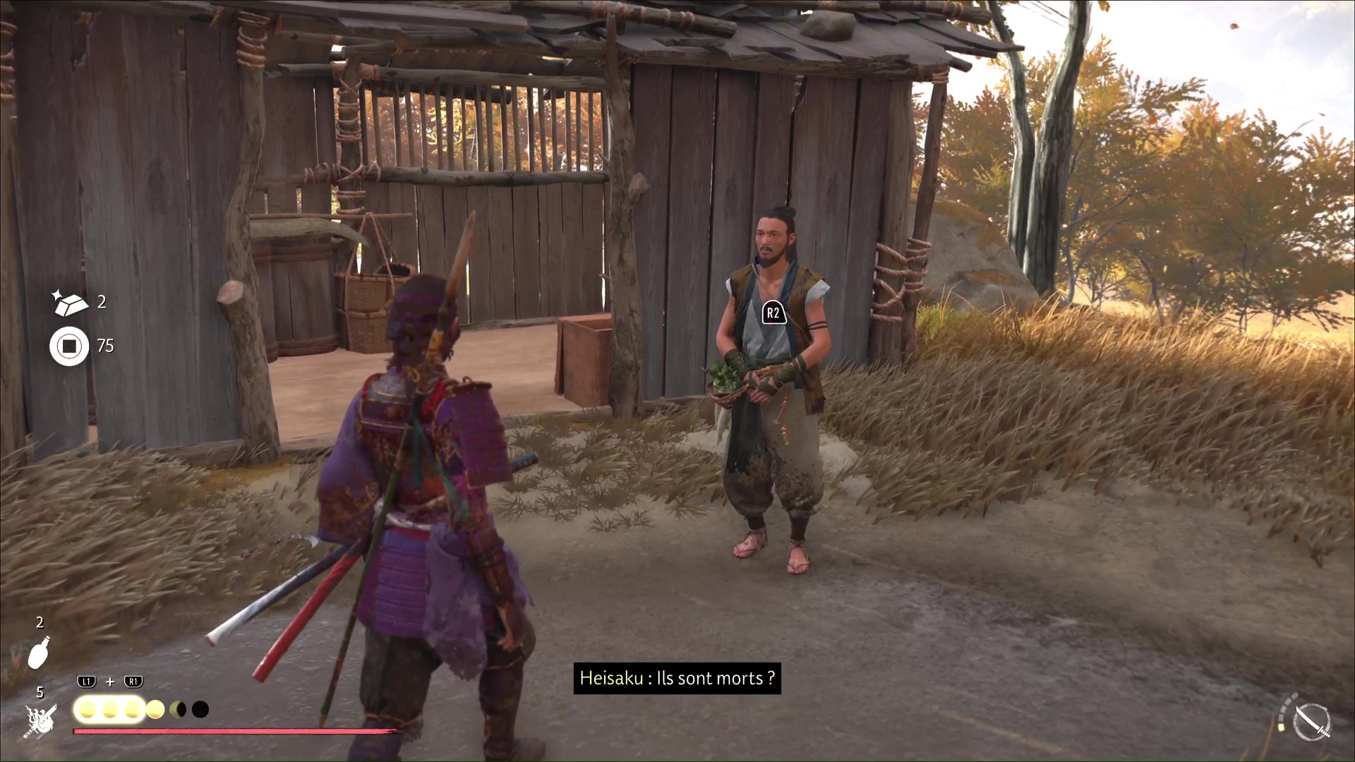 Éliminez ensuite les hommes de Saito restants et allez parler à Heisaku. Il vous remercie chaleureusement en vous offrant 450 pièces.