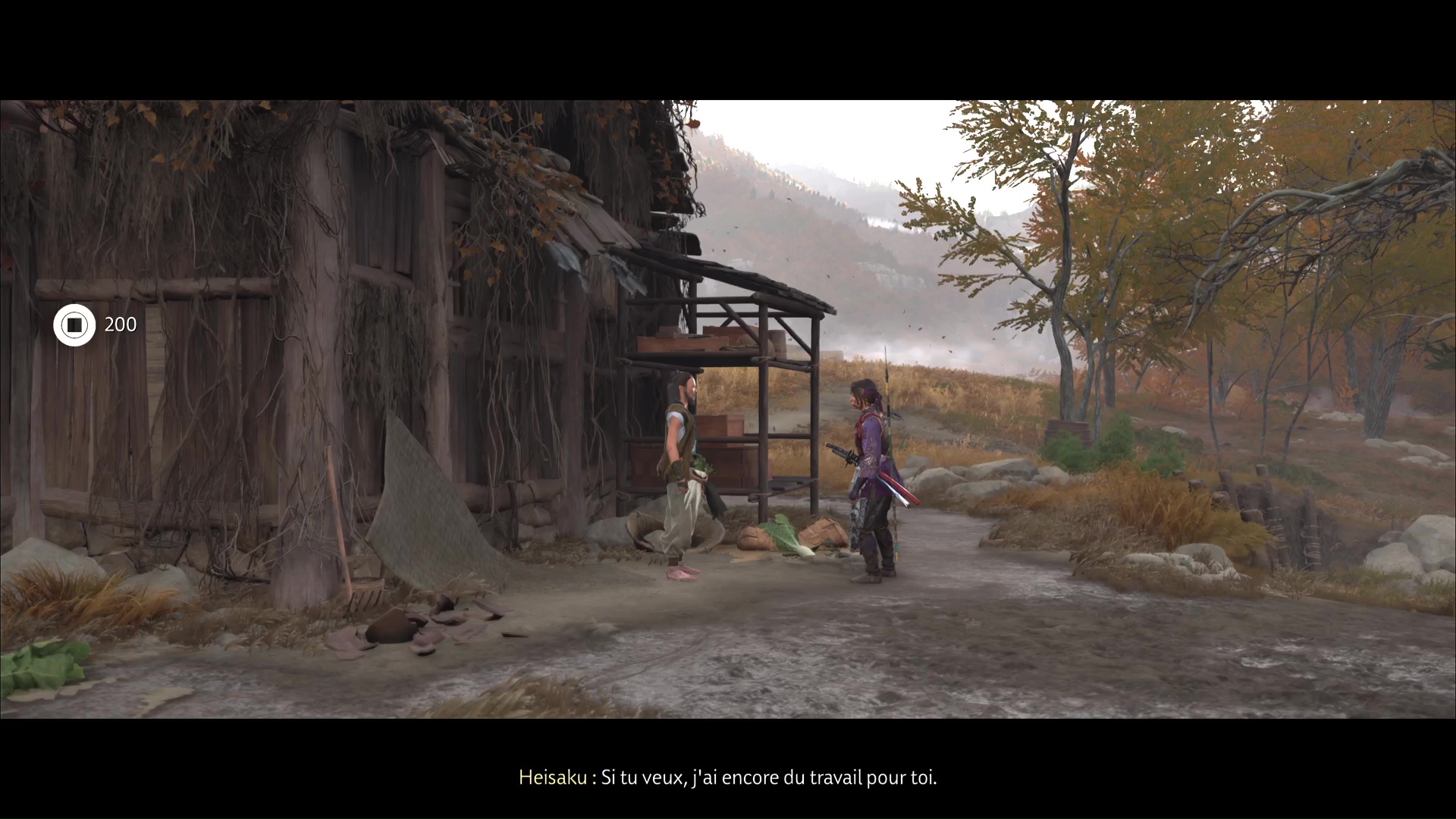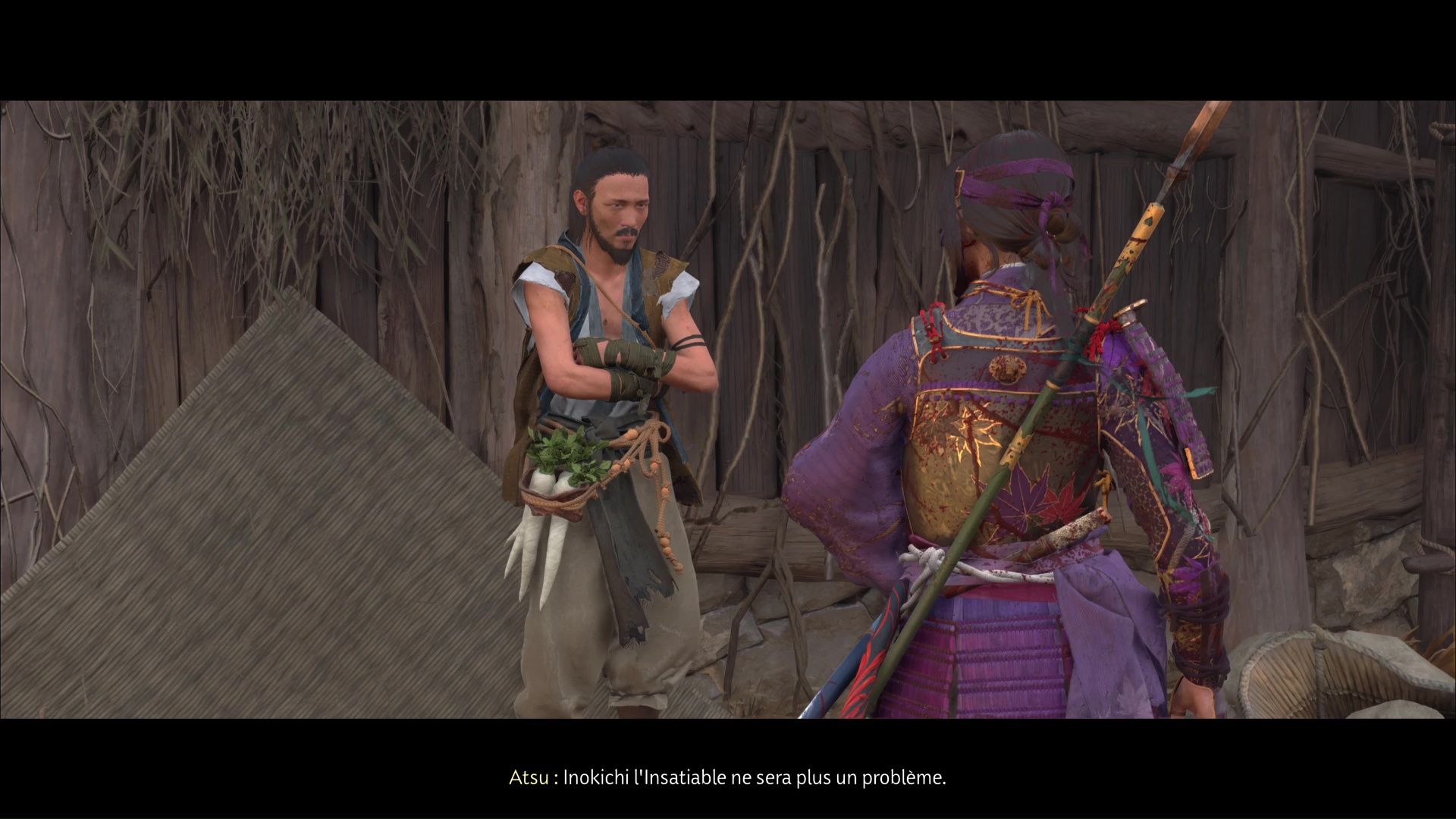 Si vous lui avez parlé avant d’avoir libéré le Moulin d’Huranui et tué Inokichi l’Insatiable, il vous demandera de vous en occuper. Sinon, il vous donnera d’ores et déjà 200 pièces pour service rendu.