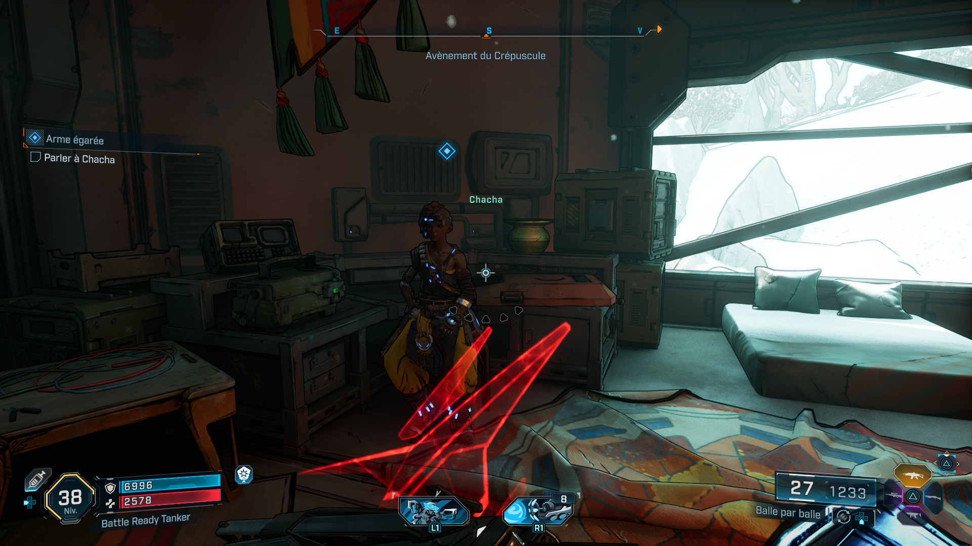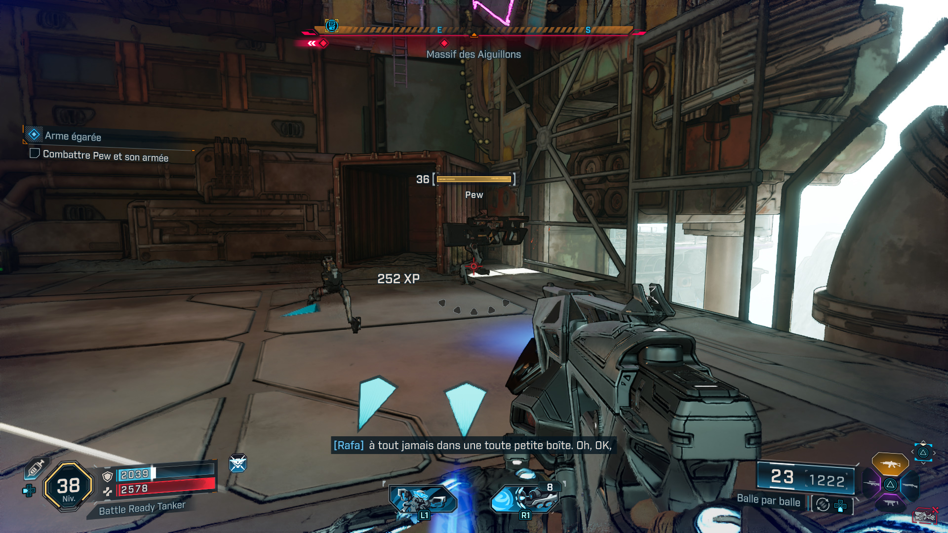 À peine Émile a-t-il terminé de vous exposer la situation qu’une armée de Rat-a-tats, autrement dit des armes sur pattes, repasse à l’attaque. Après l’avoir repoussé, allez voir Chacha non loin de là dans sa résidence qui vous demande de vous rendre à la réserve de munitions située au sud-ouest du camp.