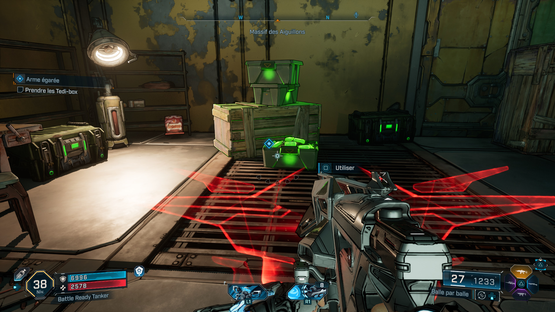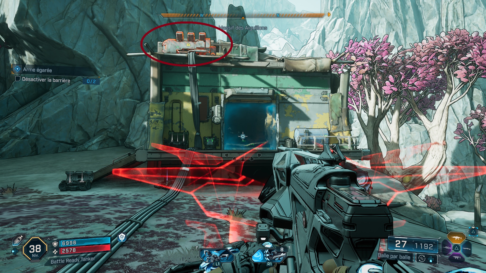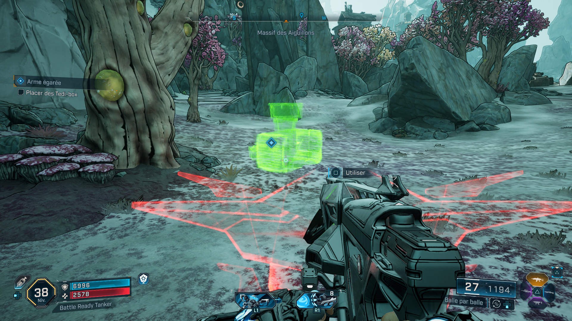 Entrez ensuite dans la réserve et prenez les Tedi-box avant de filer en direction de l’ouest pour les placer à l’endroit indiqué. Il ne vous reste plus qu’à vous en servir pour capturer 5 armes Tediore en jetant les Tedi-box sur eux.