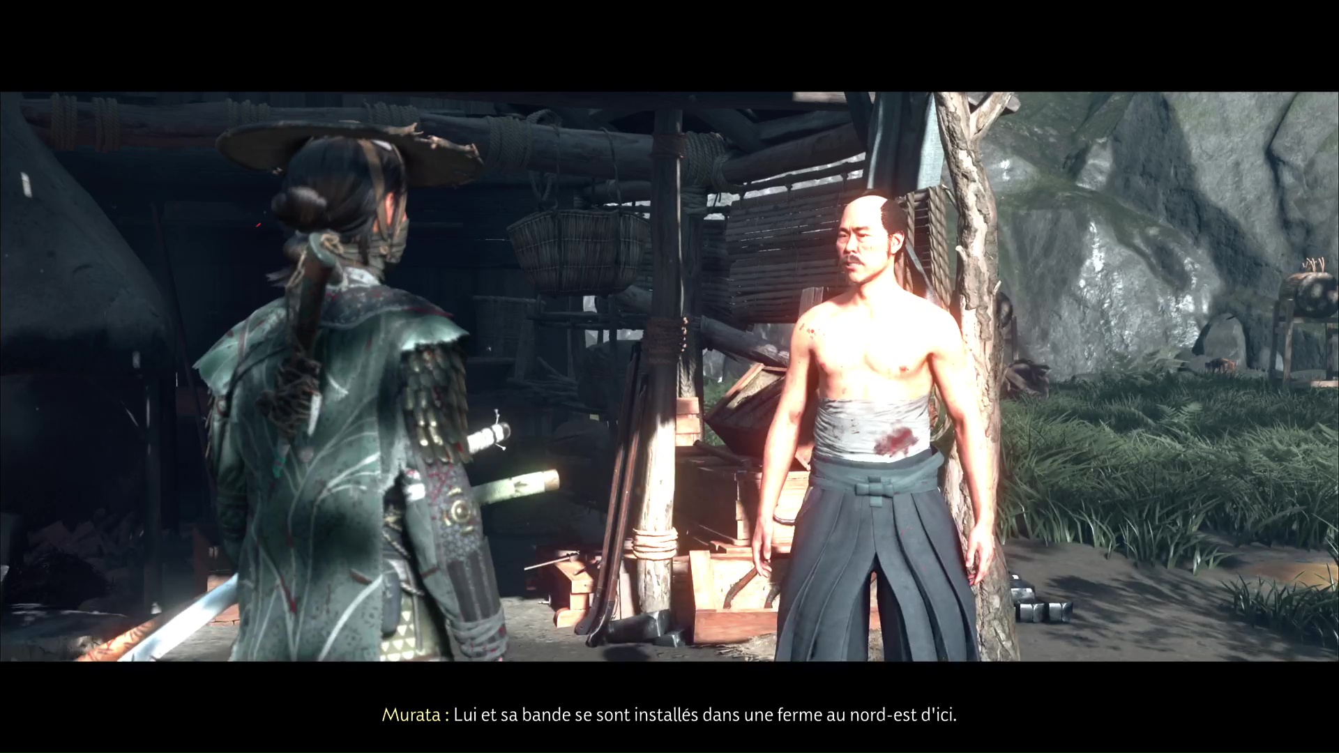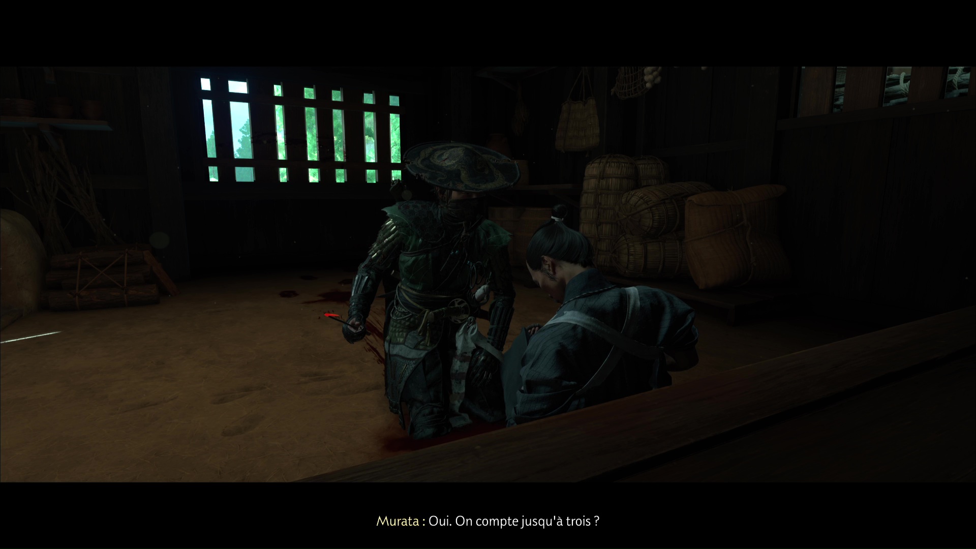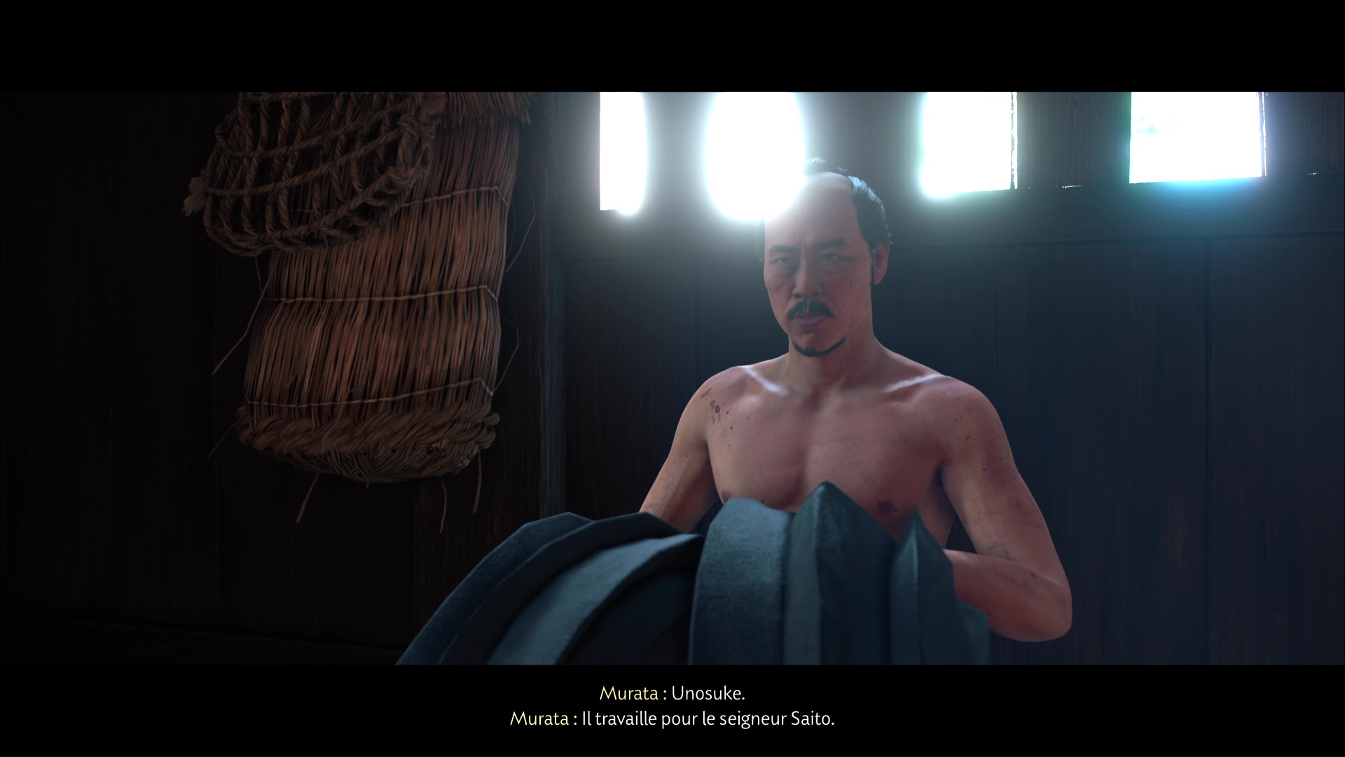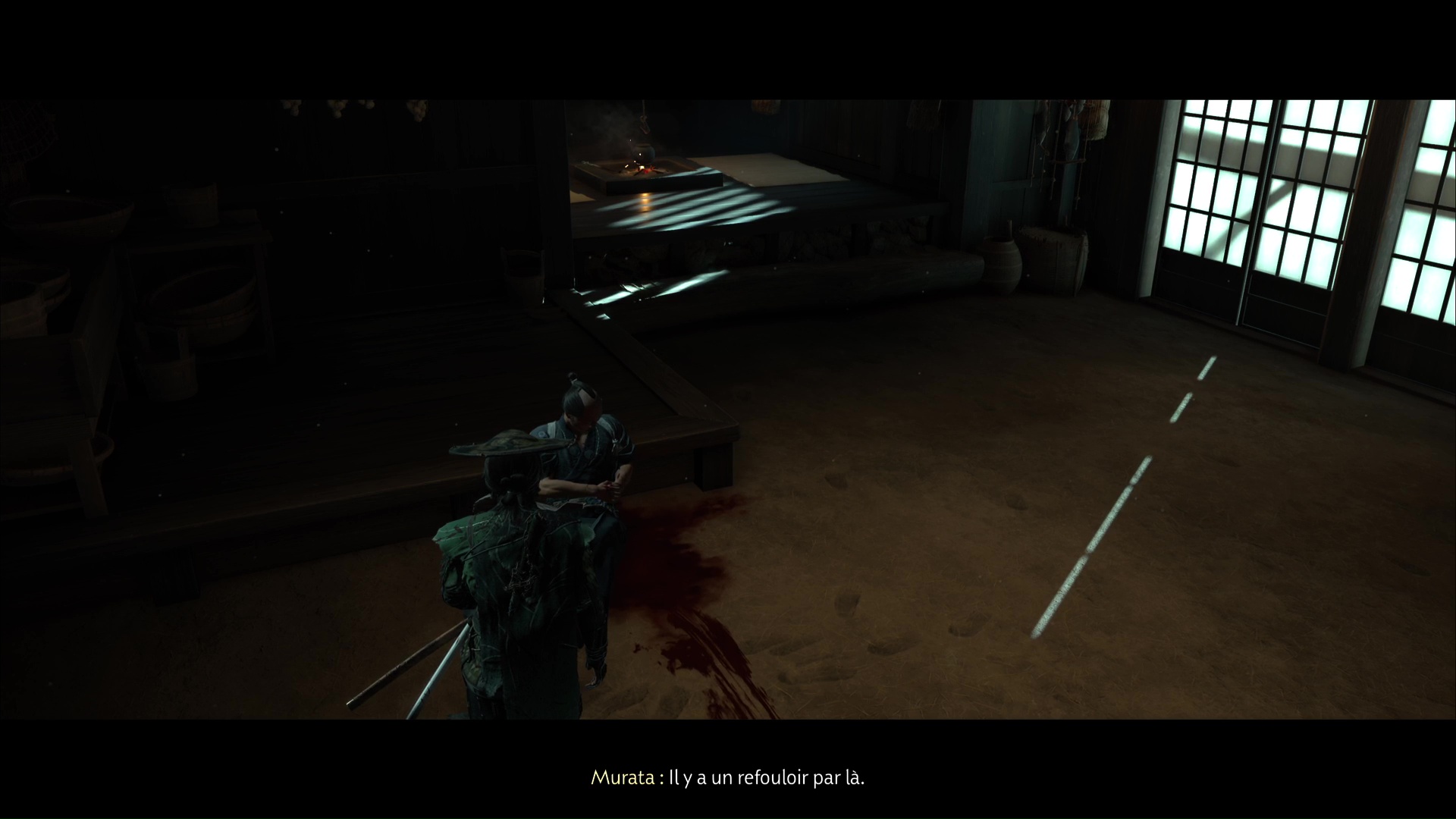 Approchez de la maison et ouvrez la porte. À l’intérieur, vous constaterez que Murata est mal en point. Parlez-lui pour apprendre qu’un de ses clients lui a tiré dessus. Il vous dira ensuite d’aller lui chercher du saké.
