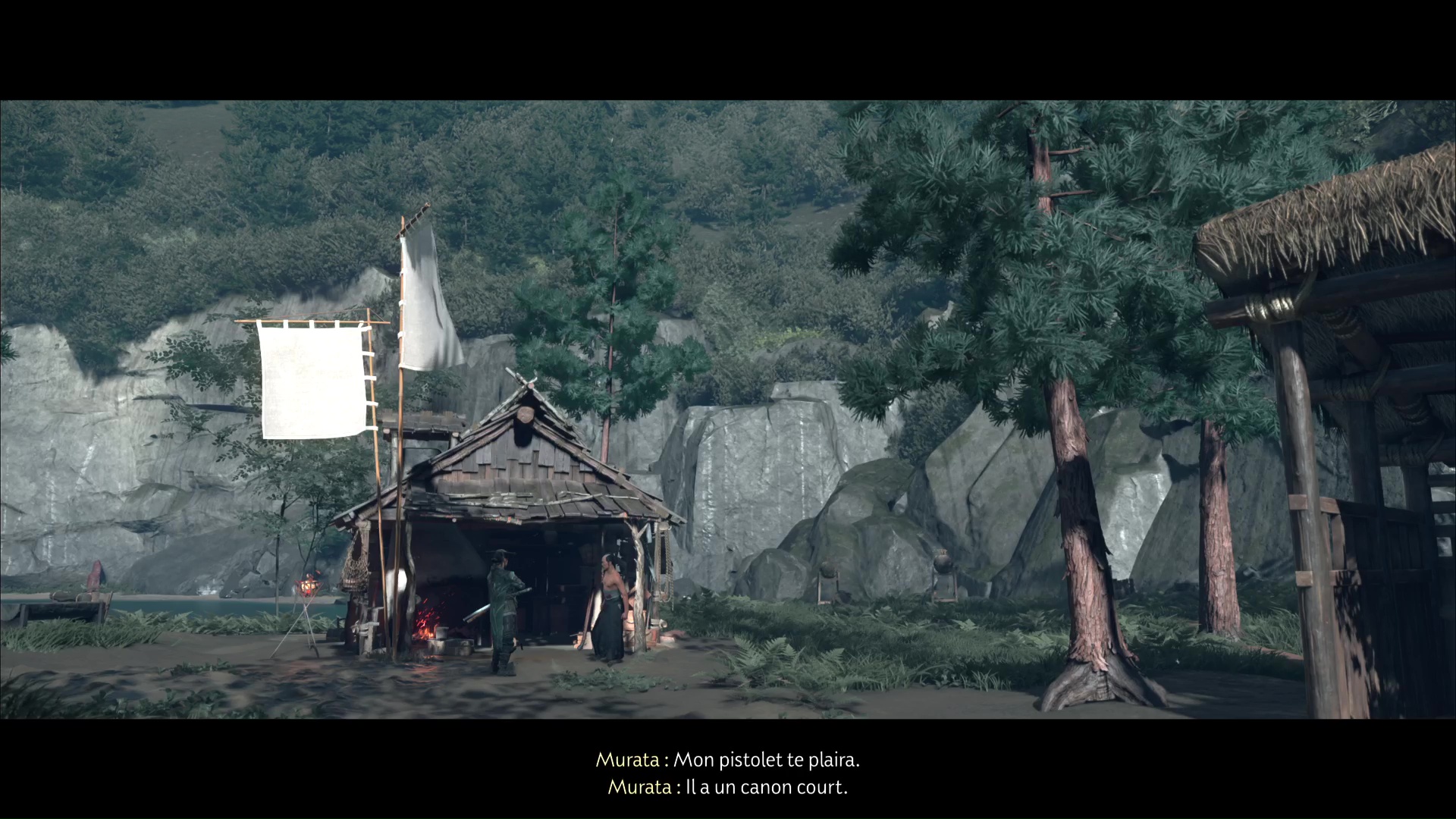 Il s’agit d’un pistolet au canon court, qui serait un parfait complément au tanegashima. Murata vous informe enfin qu’Unosuke se trouve au nord-est d’ici, et qu’il est en mesure d’améliorer votre fusil.