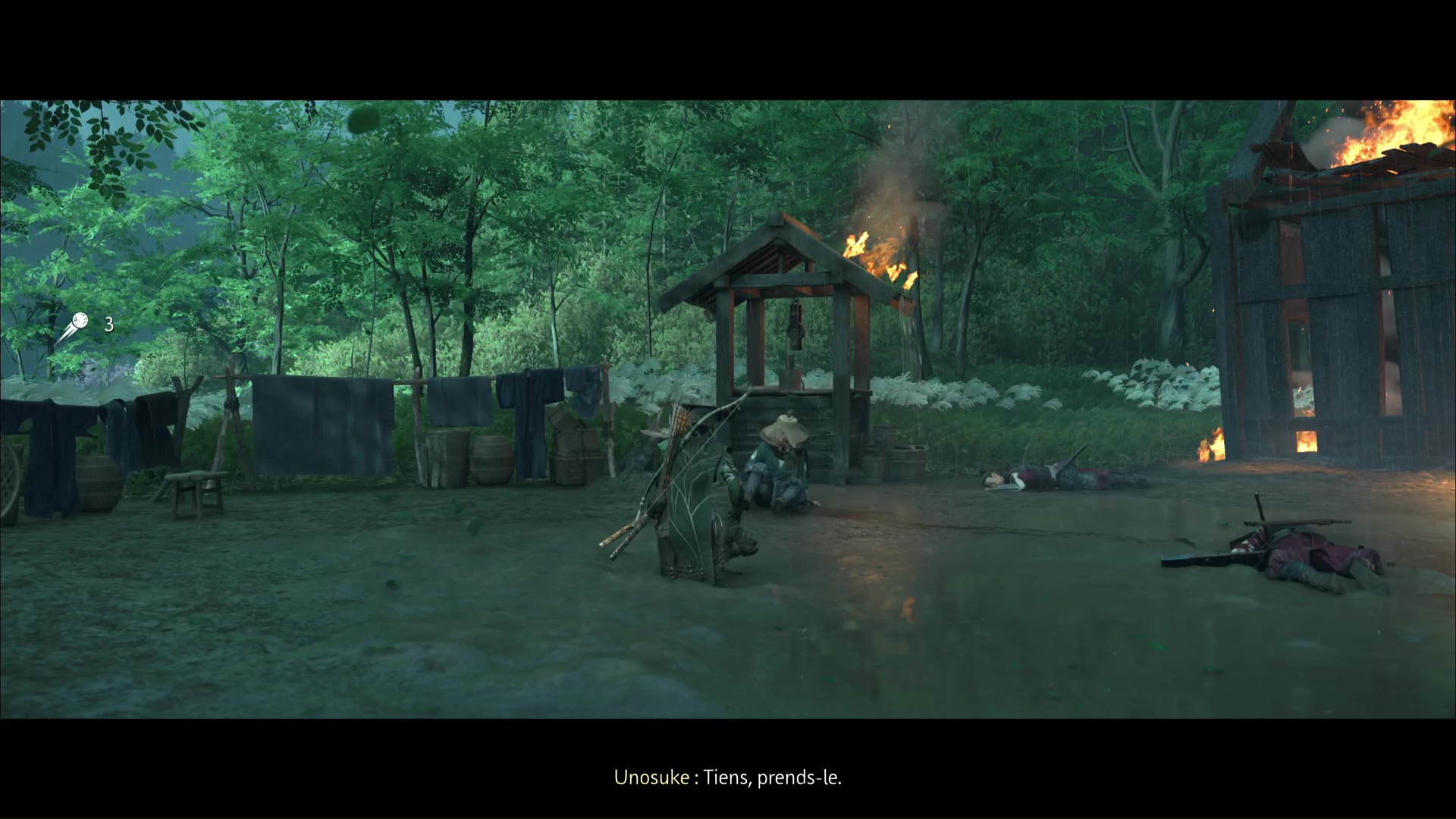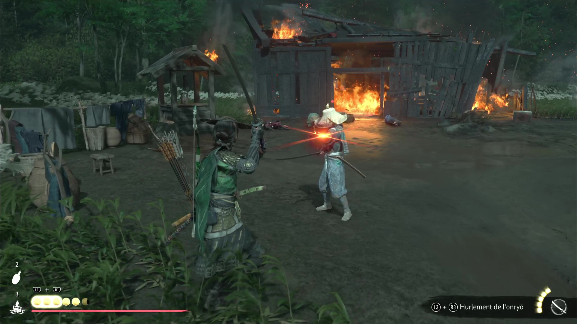 Direction le nord-est, donc, et plus précisément le nord des Collines de Tokuyama. Vous approcherez alors d’une ferme qui, hélas, est en train d’être incendiée.