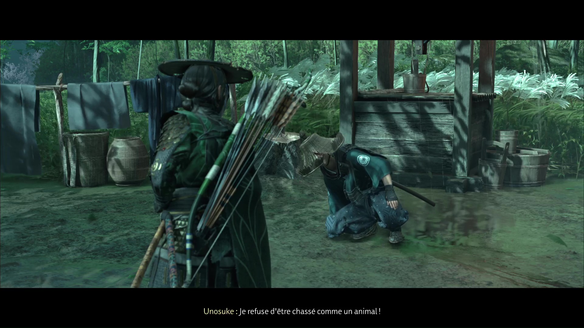 Avant de considérer cette option, Murata emmène Atsu faire un tour. Il lui montre ce qu’Unosuke a fait à son cheval avant de l’emmener à son atelier. C’est ici qu’il vous dit que, si Unosuke est mis hors d’état de nuire, vous obtiendrez l’arme de Murata.