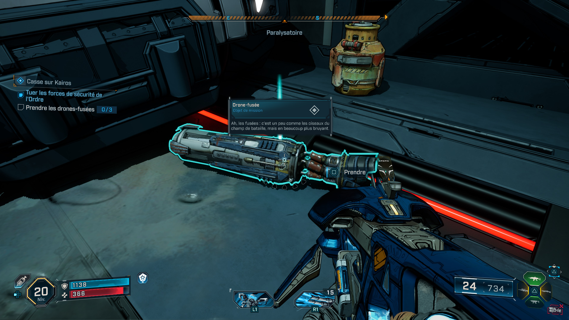 - Récompense : XP + Argent + Eridium + Mitraillette peu commune à très rare + Skin d’arme