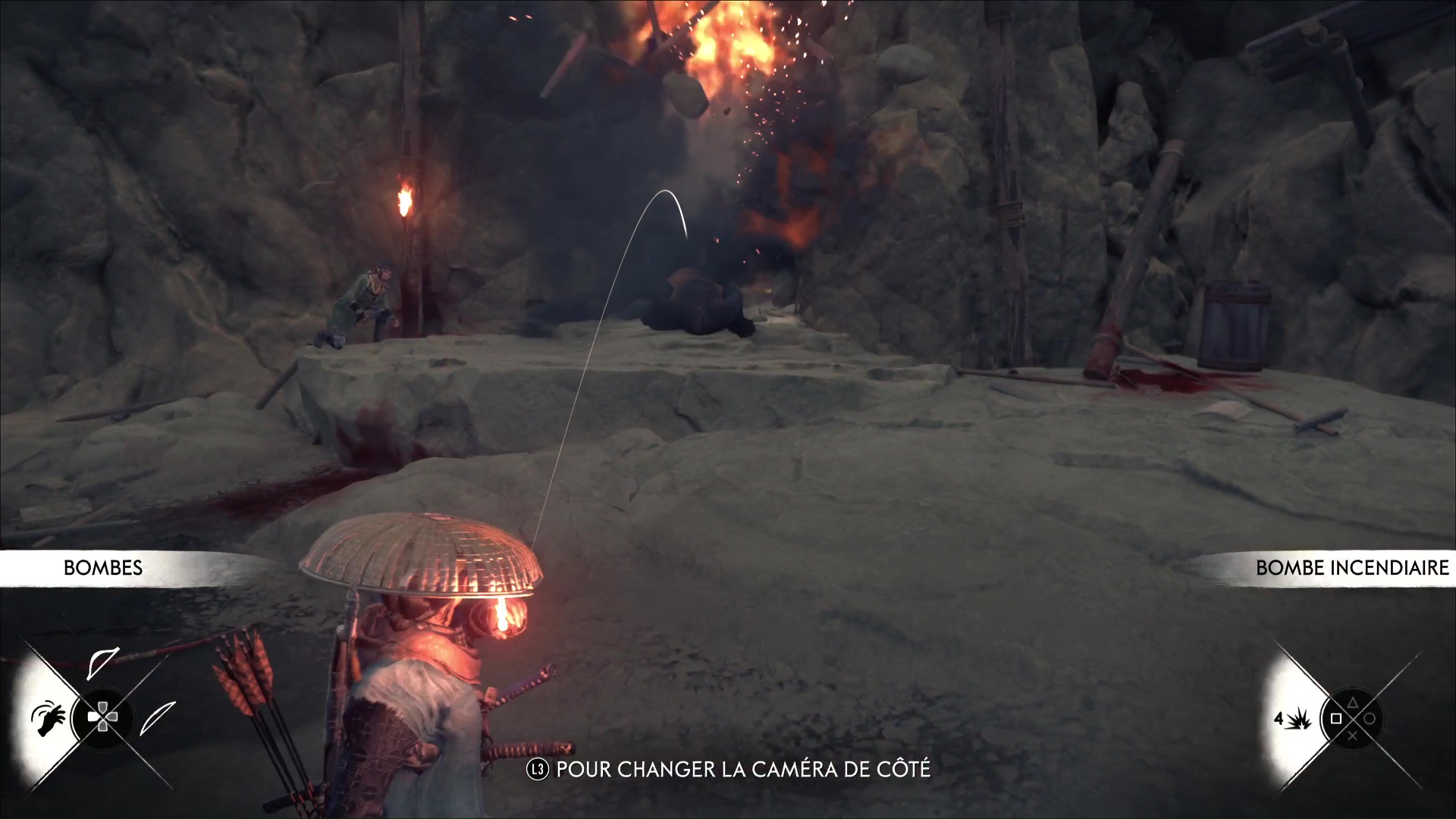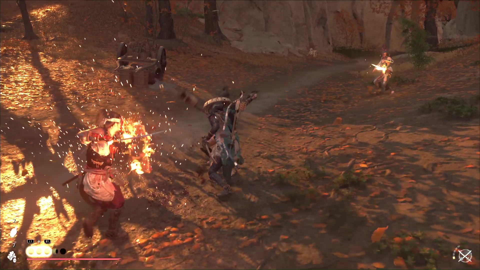 Suivez ensuite Ina au bord de la falaise puis repérez le chariot rempli de salpêtre en contrebas. Descendez au niveau du chariot en faisant le tour depuis l’autre côté, en se préparant à affronter plusieurs pillards. L’un d’entre eux aura une yari lance-flammes, donc attention aux brûlures.