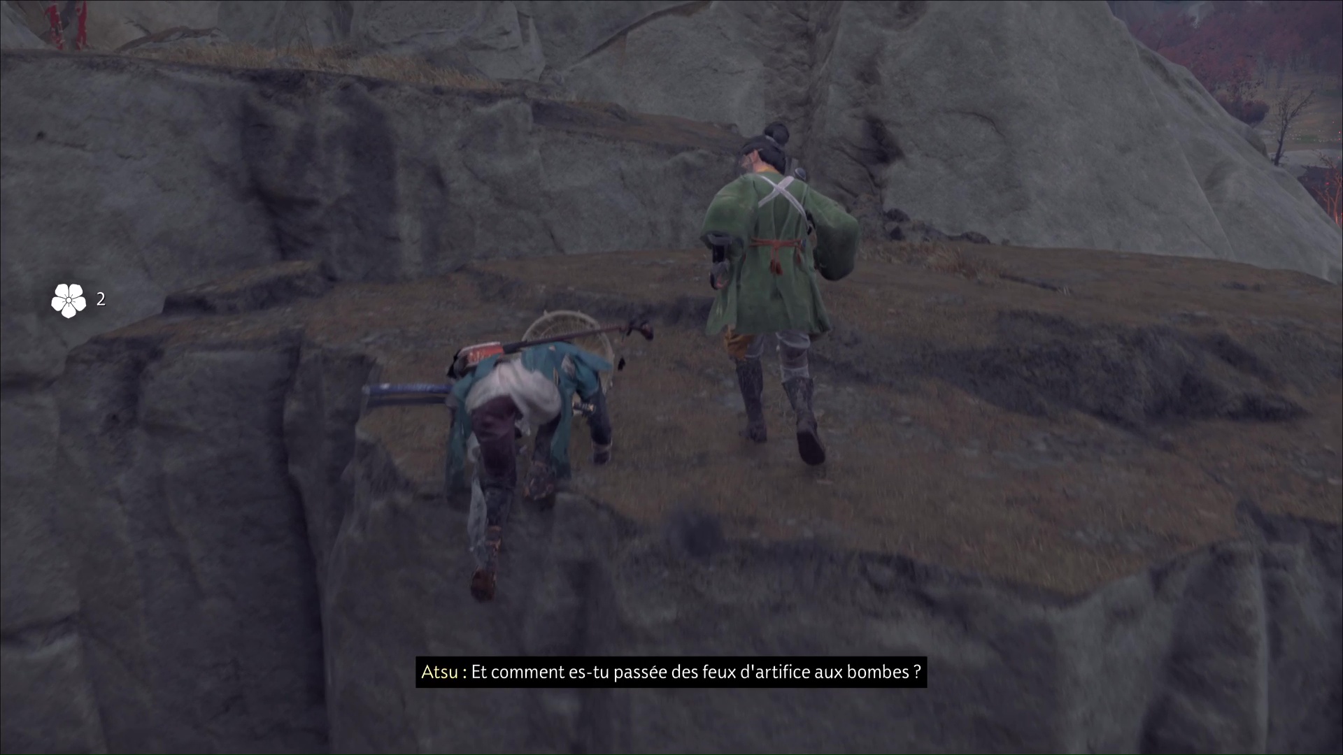 Ina ne trouve pas ce qu’elle cherche, mais Atsu va désormais pouvoir utiliser des bombes aveuglantes. Sortez de la grotte pour essayer de mettre la main sur un chariot. Hélas, des pillards se trouvent à la sortie de la grotte. Essayez donc vos nouvelles bombes sur le duo devant vous puis allez les tuer tandis que l’effet est encore actif.