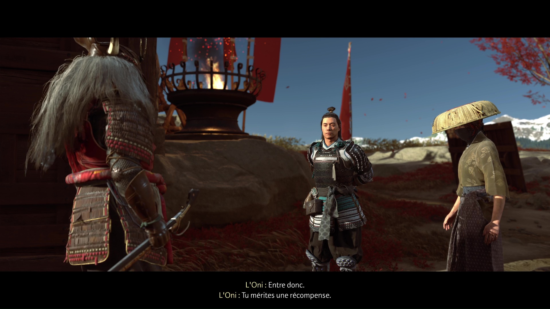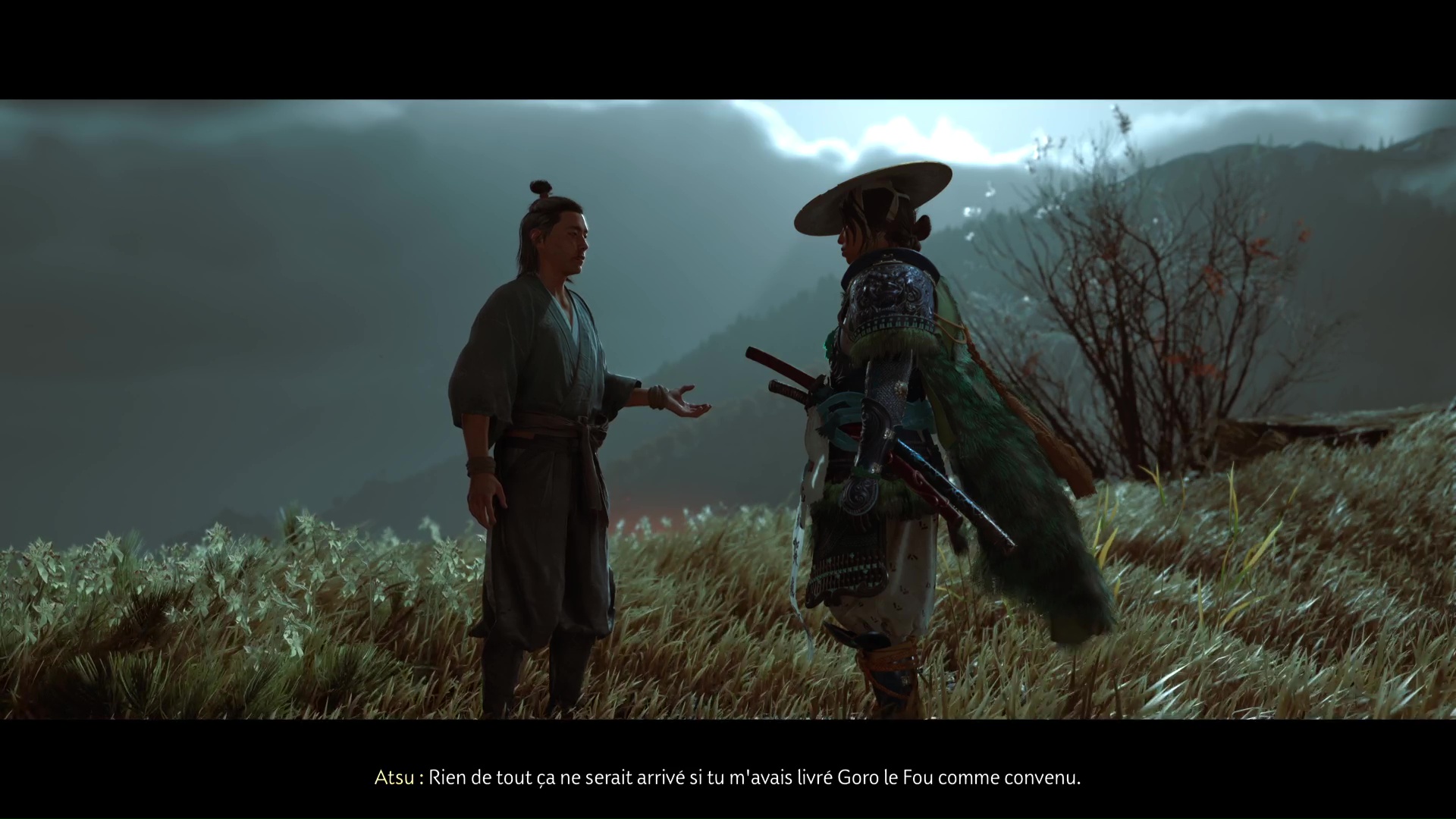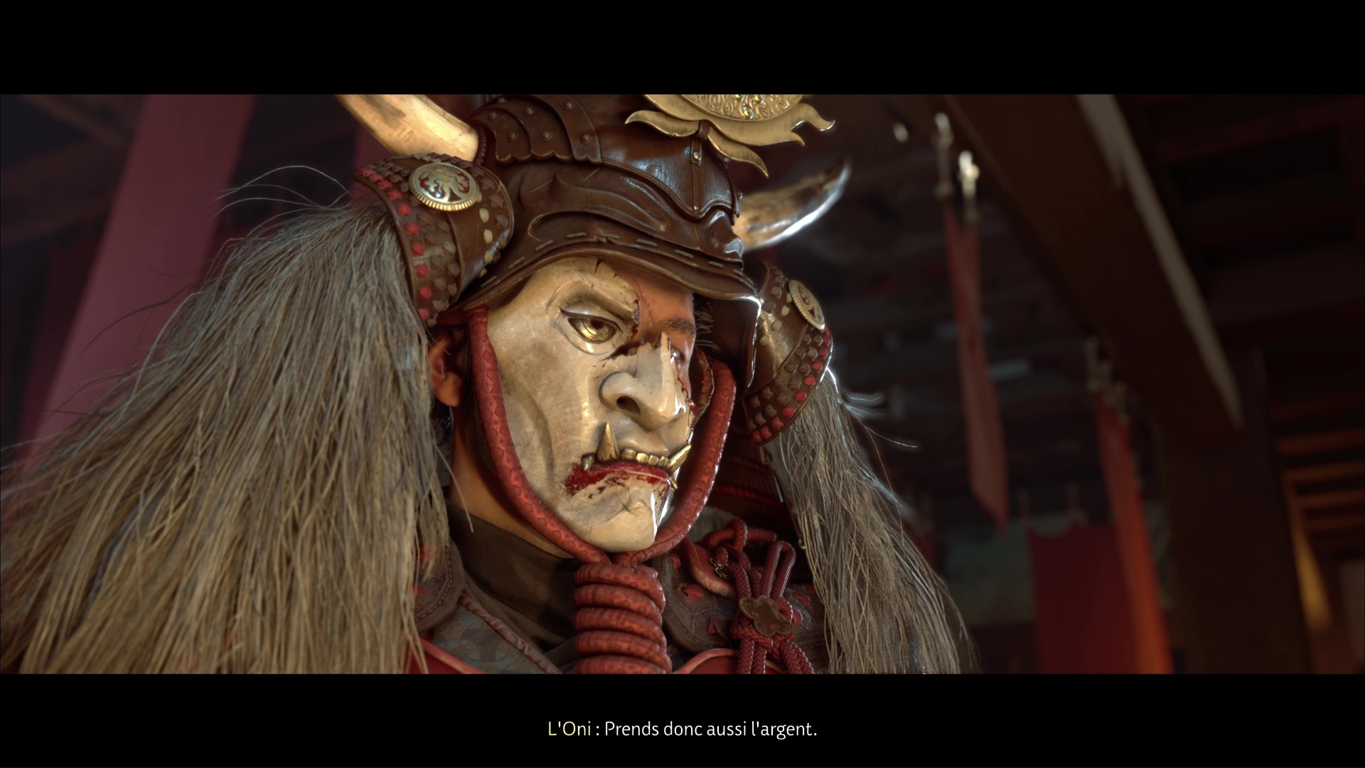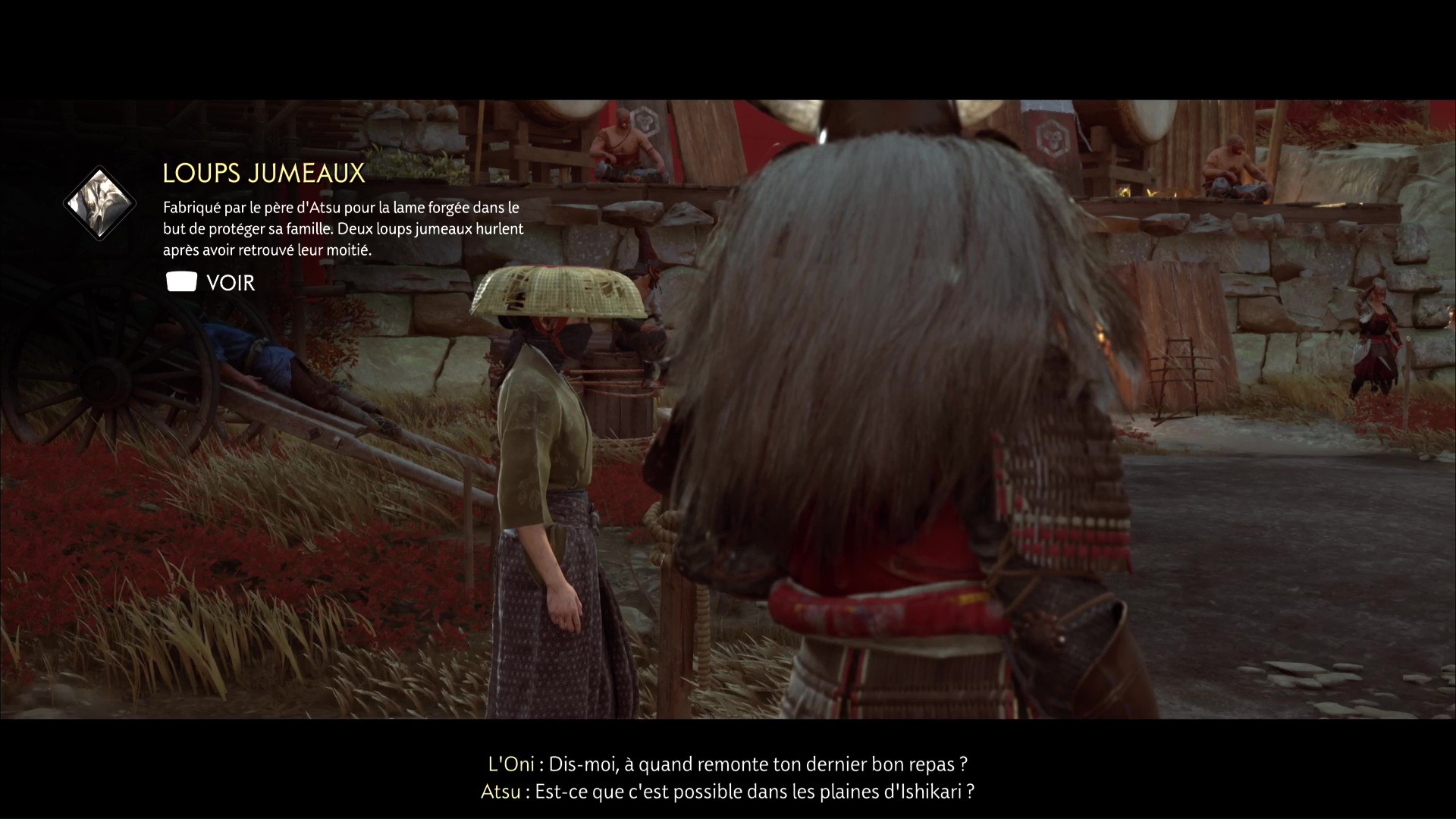 Vu le peu de valeur qu’il représente à ses yeux, l’Oni cède le saya à Atsu et lui donne l’argent en plus. Vous disposez désormais officiellement du kit de sabre Loups Jumeaux et de 3000 pièces supplémentaires.