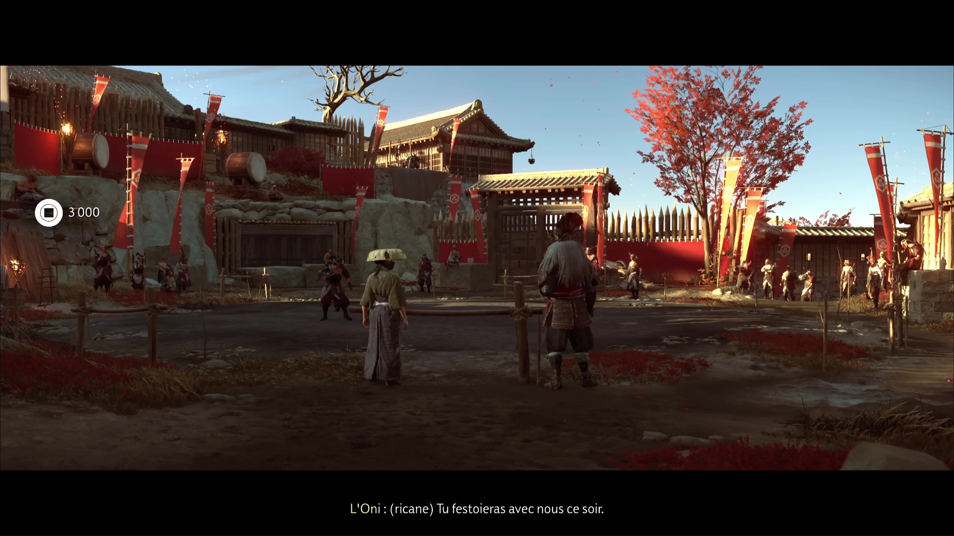 Une fois la vie de Kanta mise à zéro, volez-lui la clé tout en le relevant. Vous serez ensuite félicité par l’Oni qui confirme votre présence au banquet du soir.
