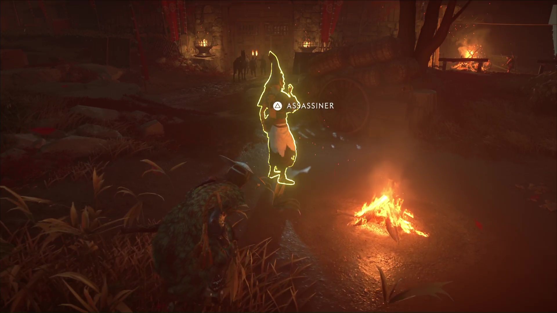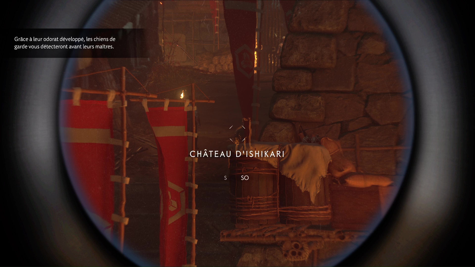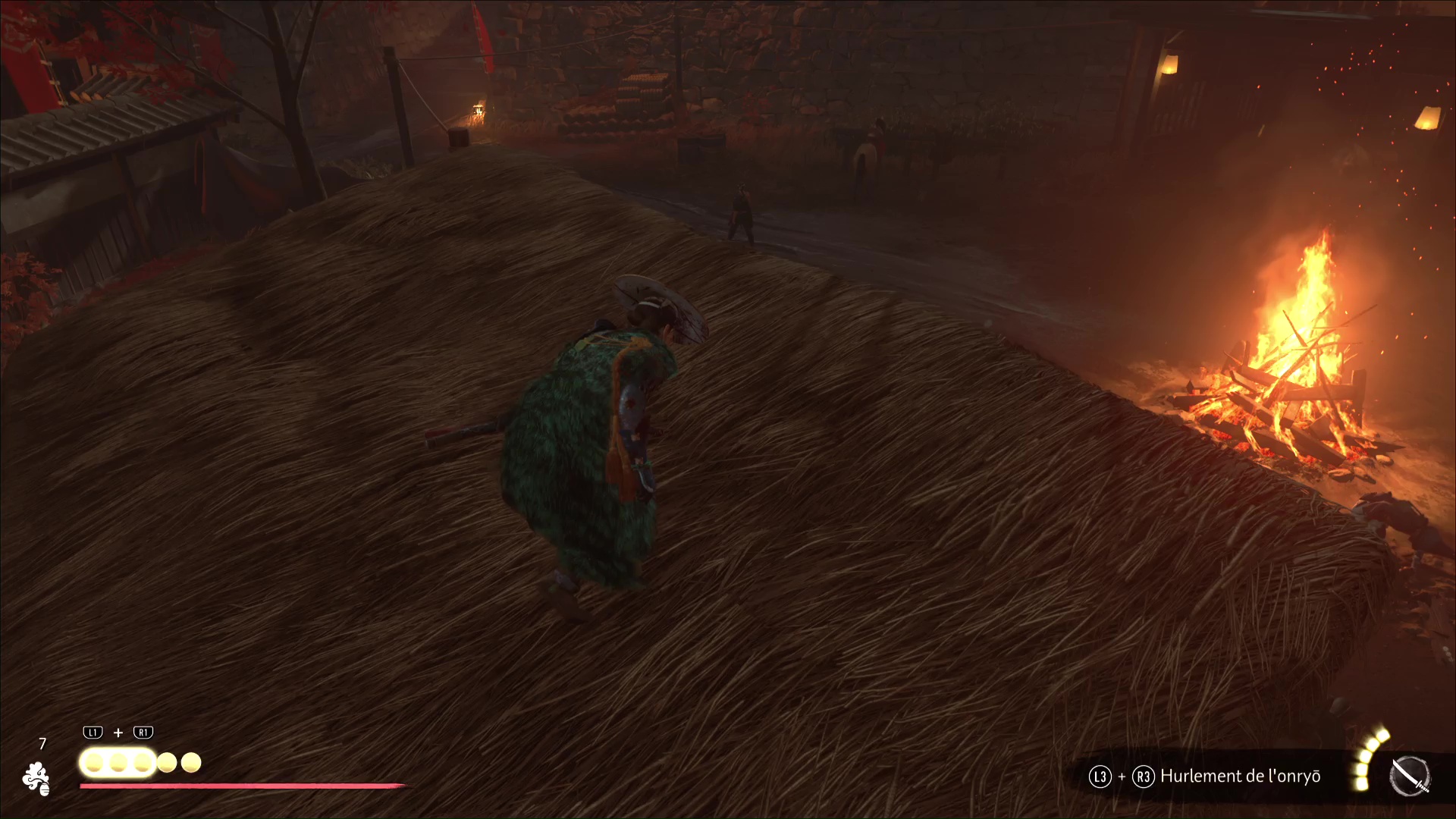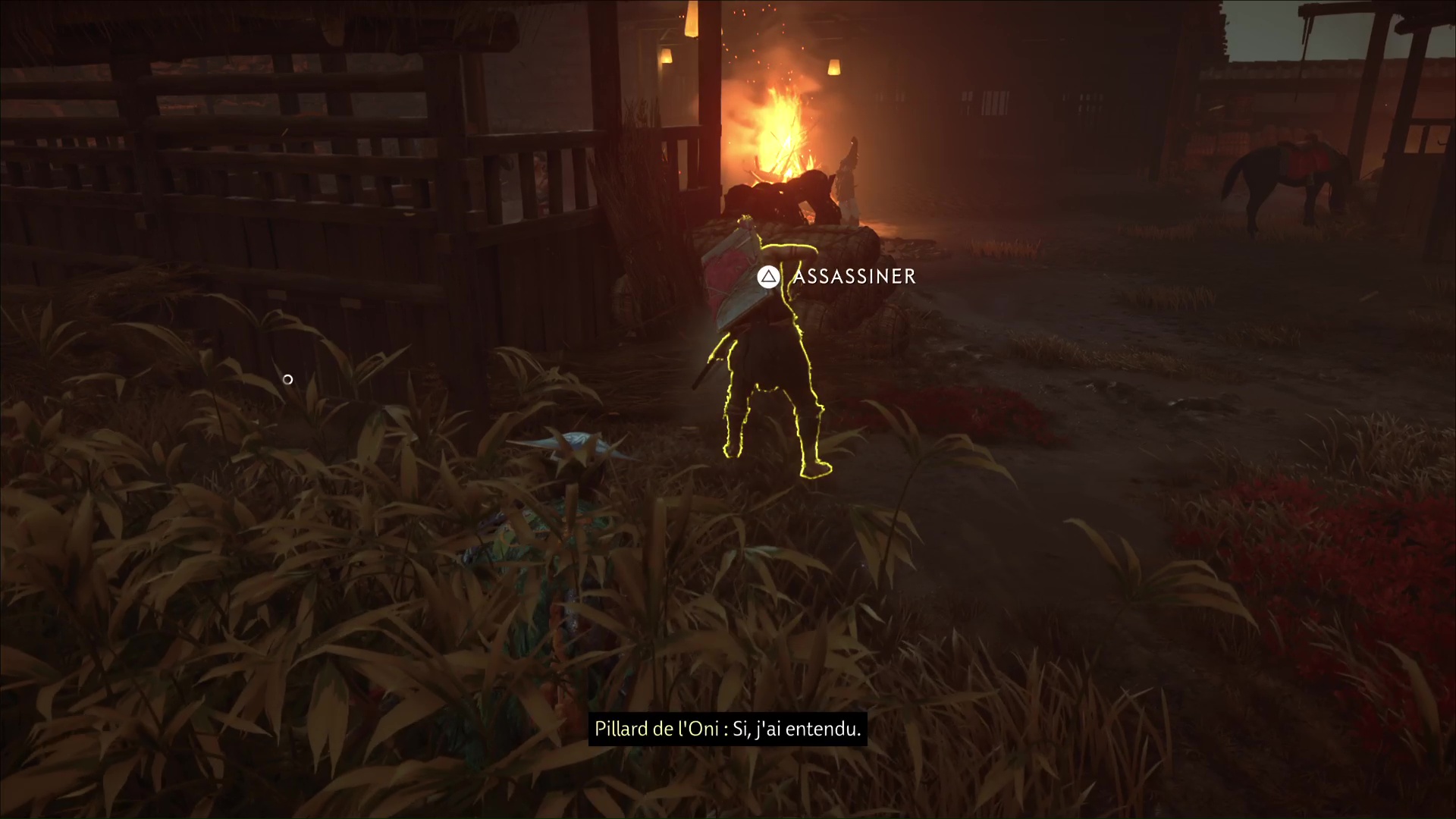 Dès que vous êtes prêt, préparez-vous à infiltrer le château pour aller sauver Jubei. La porte d’entrée est bien sûr gardée, donc partez sur la droite. Un ennemi est debout près d’un feu de camp. Assassinez-le pour être tranquille. Poursuivez sur la droite et remarquez la corde suspendue. C’est par là que vous allez passer.