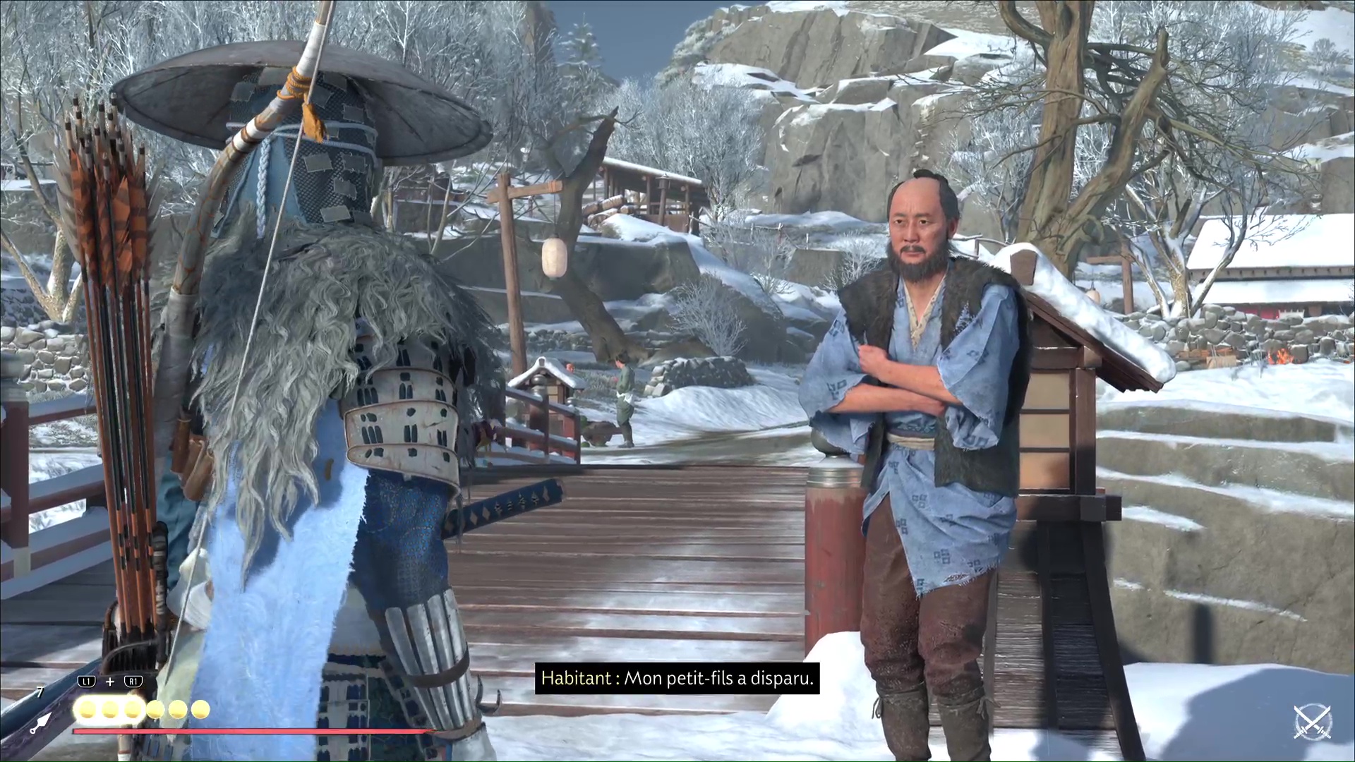 Pour certains, la famille c’est important, et un vieil homme de la Crête de Teshio désespère de ne pas voir revenir son petit-fils, parti chasser. Rendez-vous aux alentours de l’Auberge de la Grue rouge pour commencer ce nouveau récit de Ghost of Yōtei, qui va demander à Atsu de faire un petit peu d’alpinisme.