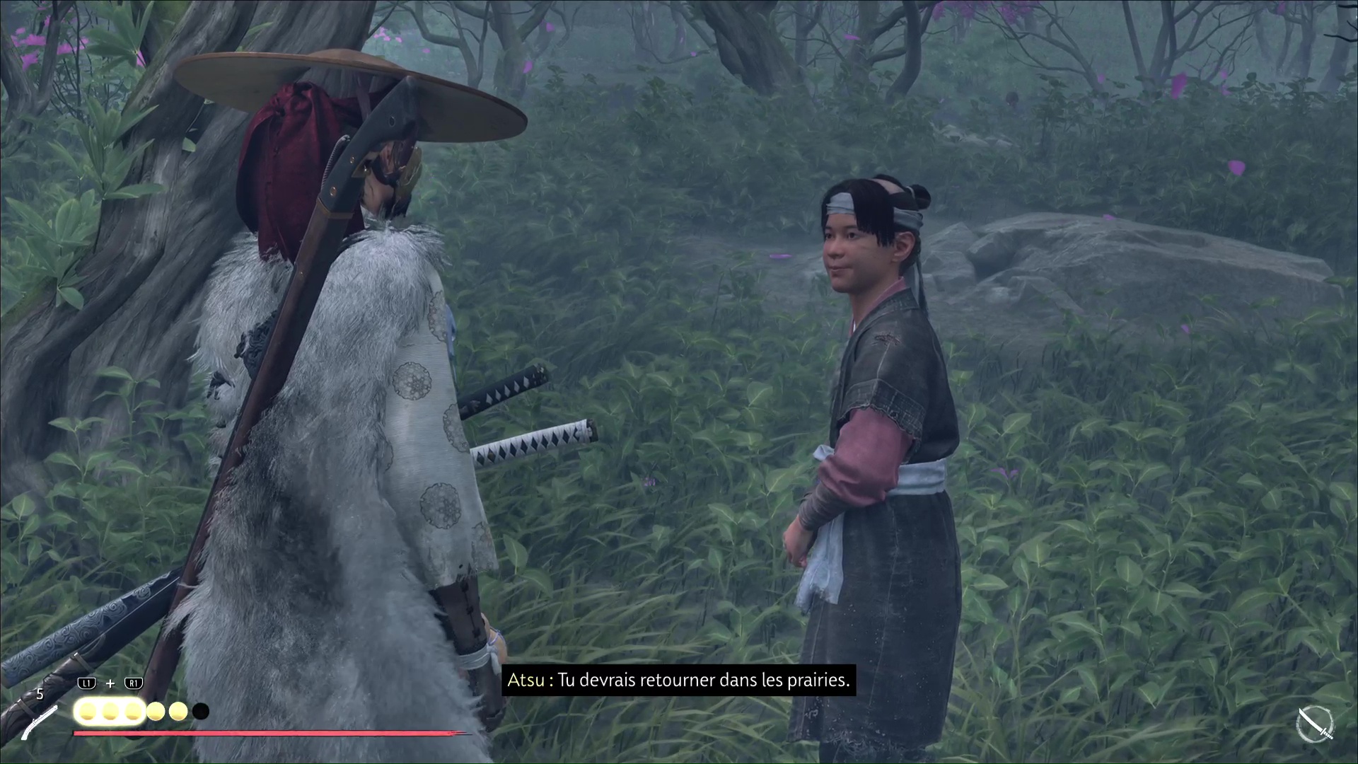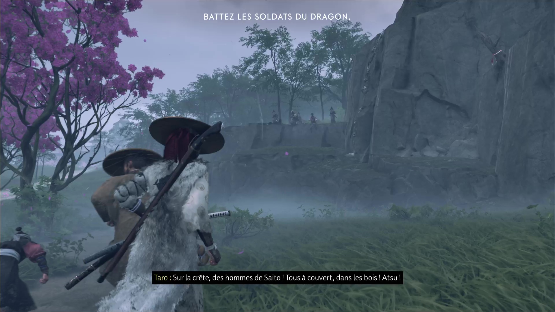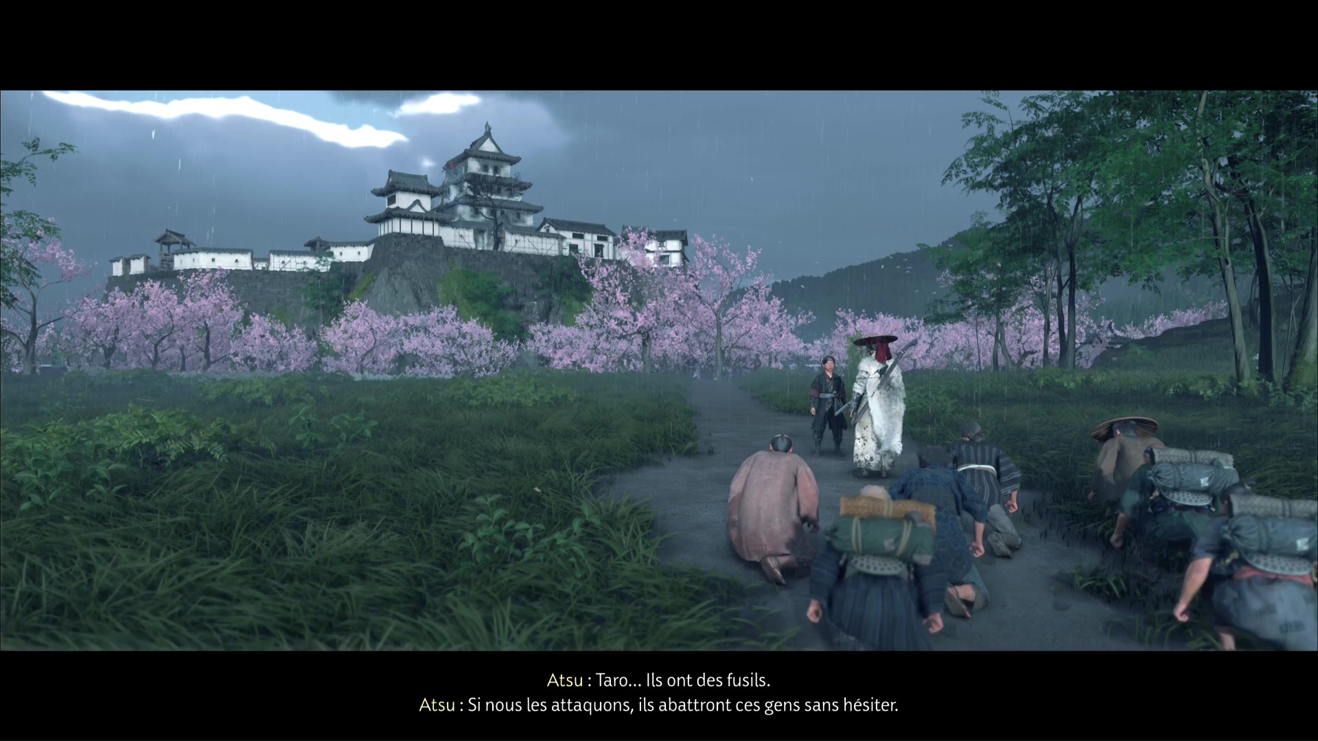 Dès que la menace est écartée, retournez voir Taro. Vous vous remettez en route et poursuivez votre conversation avec Taro. Rapidement, Atsu repère d’autres hommes de Saito. Taro fonce alors vers eux pendant qu’Atsu met à l’abri les réfugiés.