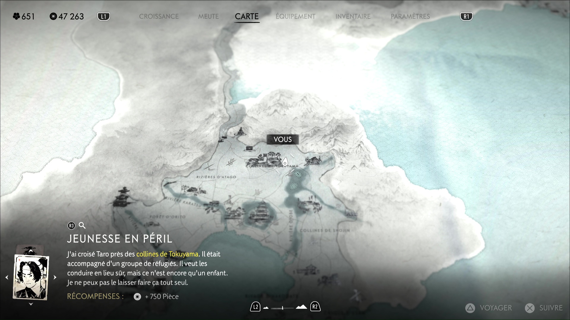 Dans Ghost of Yōtei, vous avez certainement rencontré durant vos premières heures de jeu le jeune Taro. Tenant une boutique grâce aux affaires qu’il ramasse sur les cadavres qu’Atsu laisse derrière elle, le garçon survit comme il le peut. Mais il a aussi bon coeur, et il a décidé de conduire des réfugiés en lieu sûr, sur la Côte d’Oshima. Atsu, évidemment, va pouvoir lui rendre service en l’aidant dans cette démarche.