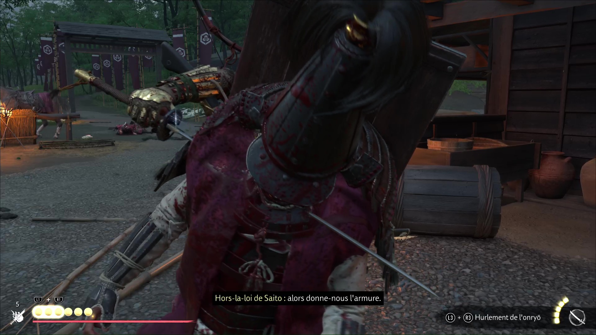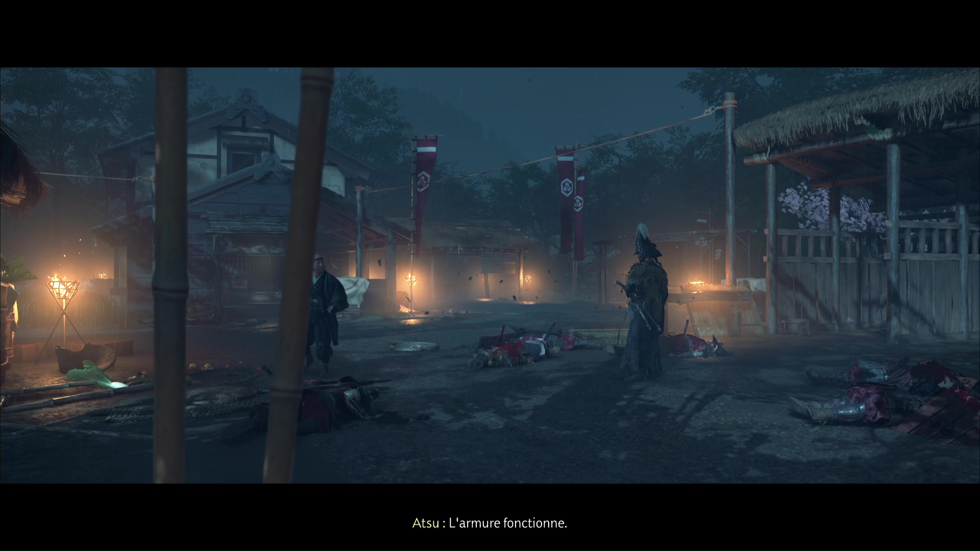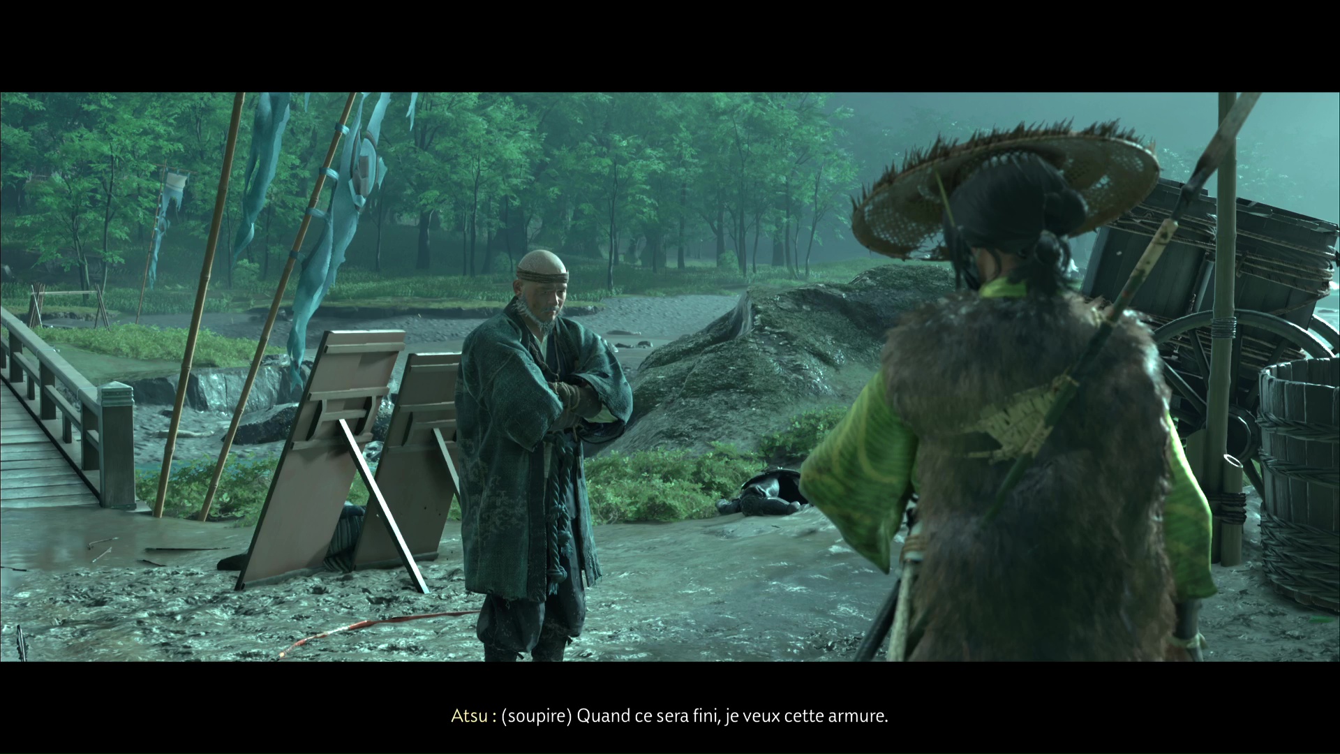 Ginji l’armurier est depuis le début de l’aventure un allié précieux pour Atsu. Capable d’améliorer ses armures afin de booster leurs capacités, les visites à son échoppe sont toujours agréables. Mais pour ce récit de sensei de Ghost of Yōtei, c’est carrément une armure inédite qu’il souhaite proposer à Atsu. Il travaille en effet sur une pièce toute particulière capable de résister aux projectiles. Hélas, un tel ouvrage a attisé la curiosité et repose au beau milieu d’une zone convoitée par les hommes de Saito. Notre héroïne va donc les chasser et récupérer l’armure.