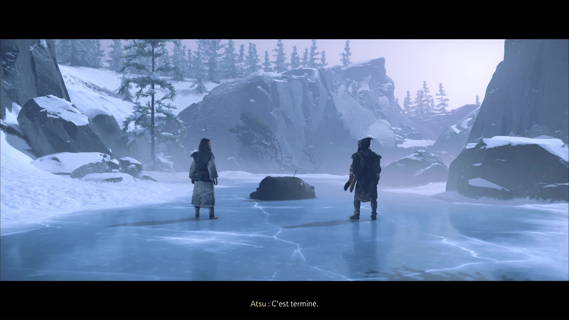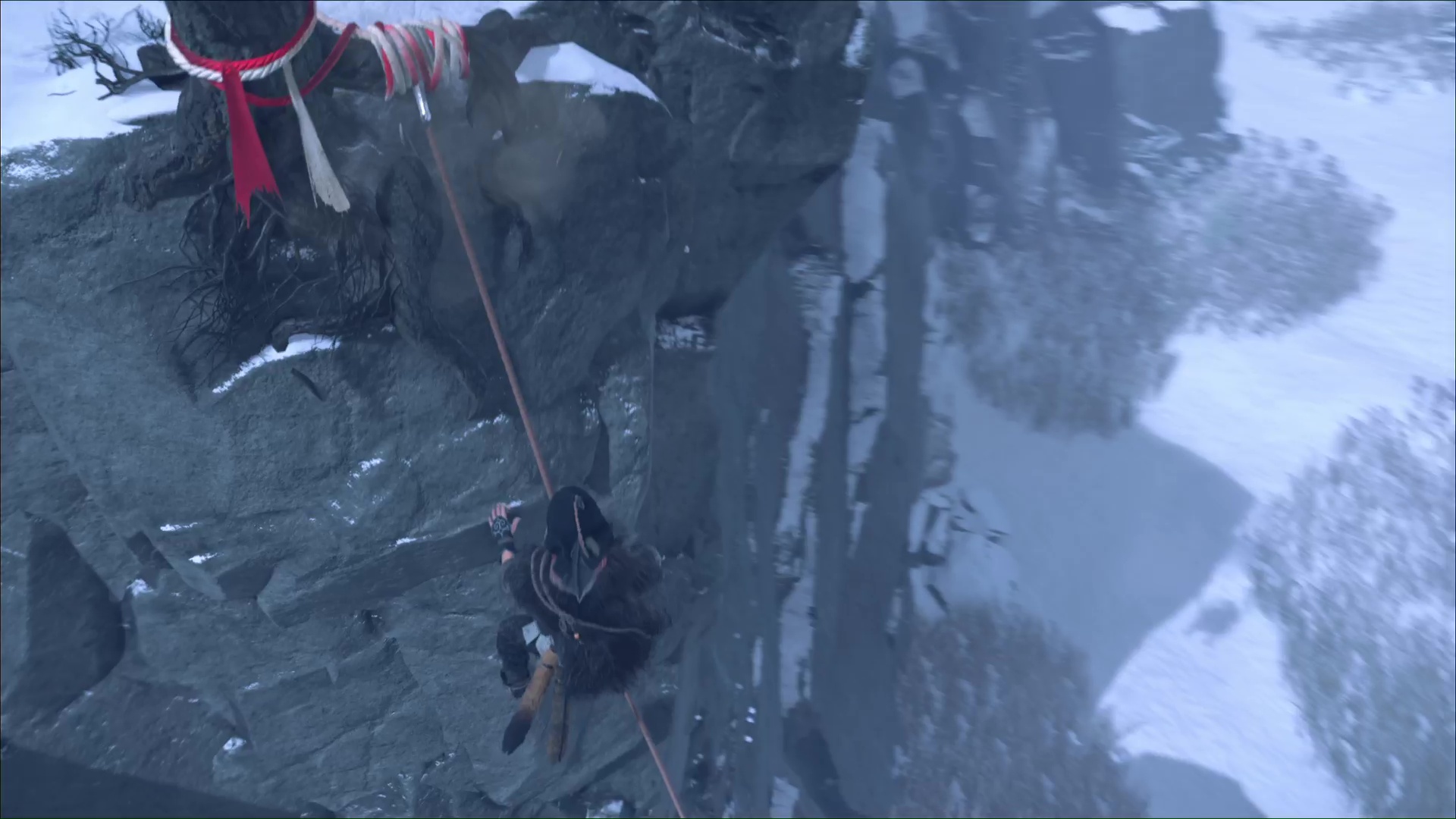 Parlez-lui et vous apprendrez qu’il a des informations sur la flèche légendaire. Mais d’abord, faites un feu. Au cours d’une petite discussion, l’aïnou vous invite à le suivre. Ensemble, tirez avec votre grappin pour retirer la barrière, et vous voici paré pour commencer votre périple.