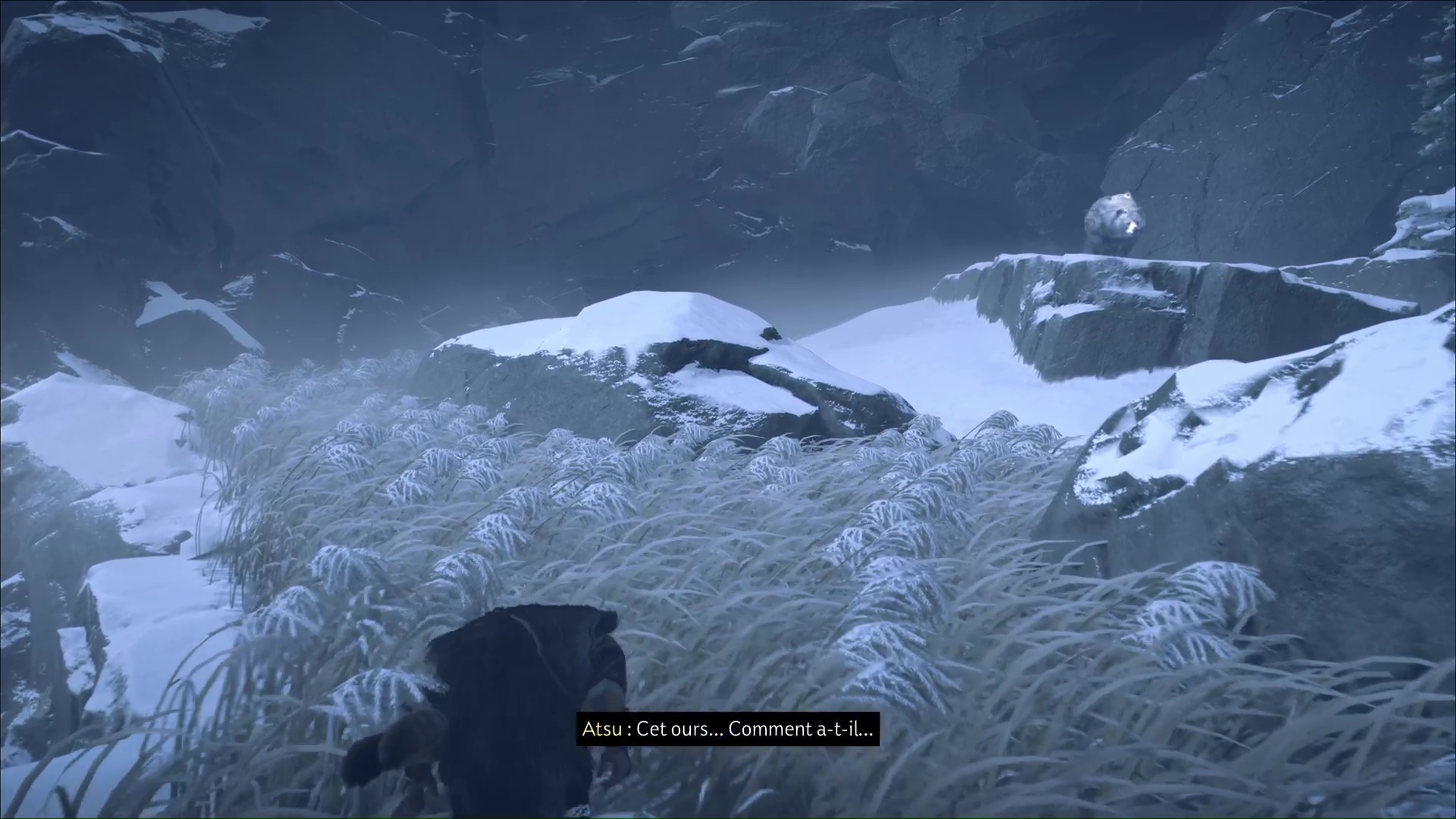 En haut, l’aînou vous attend. L’ours va alors approcher, et vous n’aurez plus qu’à brandir votre arc et à tirer dès lors que le viseur passe au rouge.