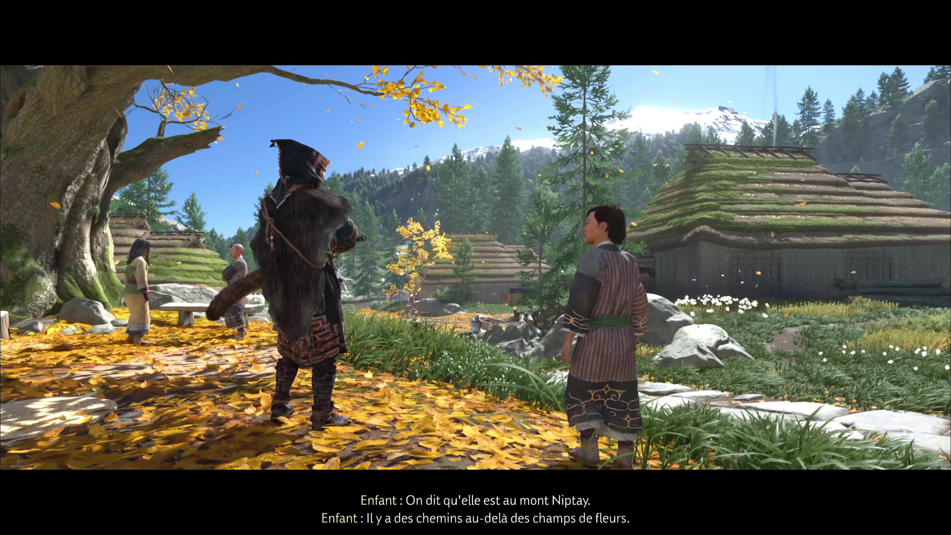 Un enfant viendra ensuite vous dire d’aller au Mont Niptay pour mener votre quête. Allez-y et grimpez la côte près d’un arbre aux feuilles blanches pour apercevoir un cerf. Interagissez avec puis faites « Observer » sur le tapis juste à côté.