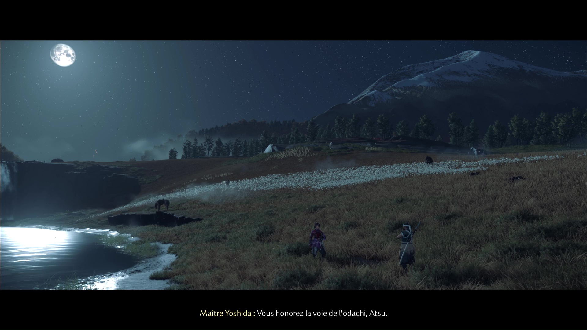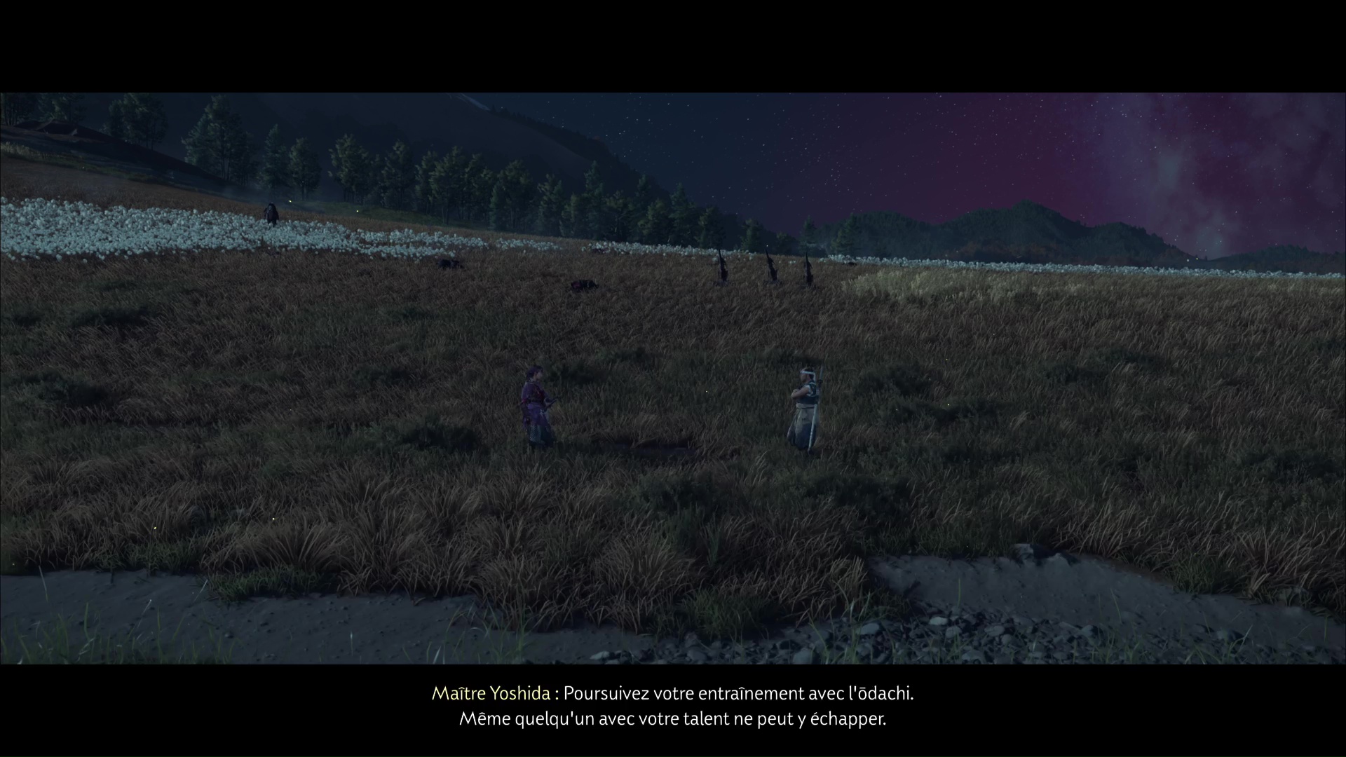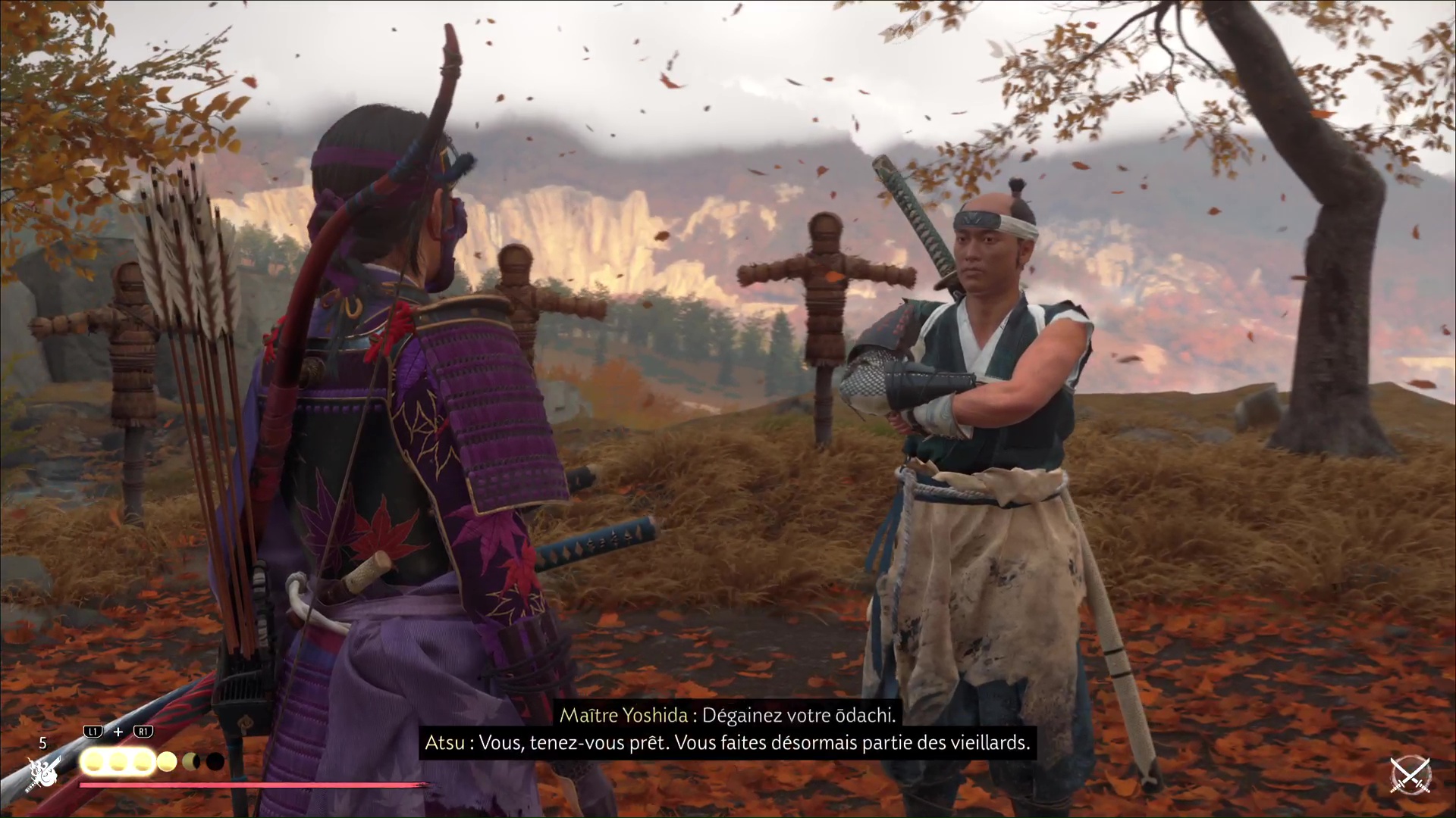 Afin de poursuivre son entraînement, Atsu a semé le trouble dans les forces des frères Saito, en libérant des camps et en tuant des cibles privilégiées. Une entreprise suggérée par maître Yoshida, qui lui a promis de lui apprendre d’autres secrets liés à l’ōdachi. Maintenant que ces objectifs sont remplis, Atsu peut donc bénéficier de cet enseignement. C’est l’objet de ce nouveau récit de sensei de Ghost of Yōtei.