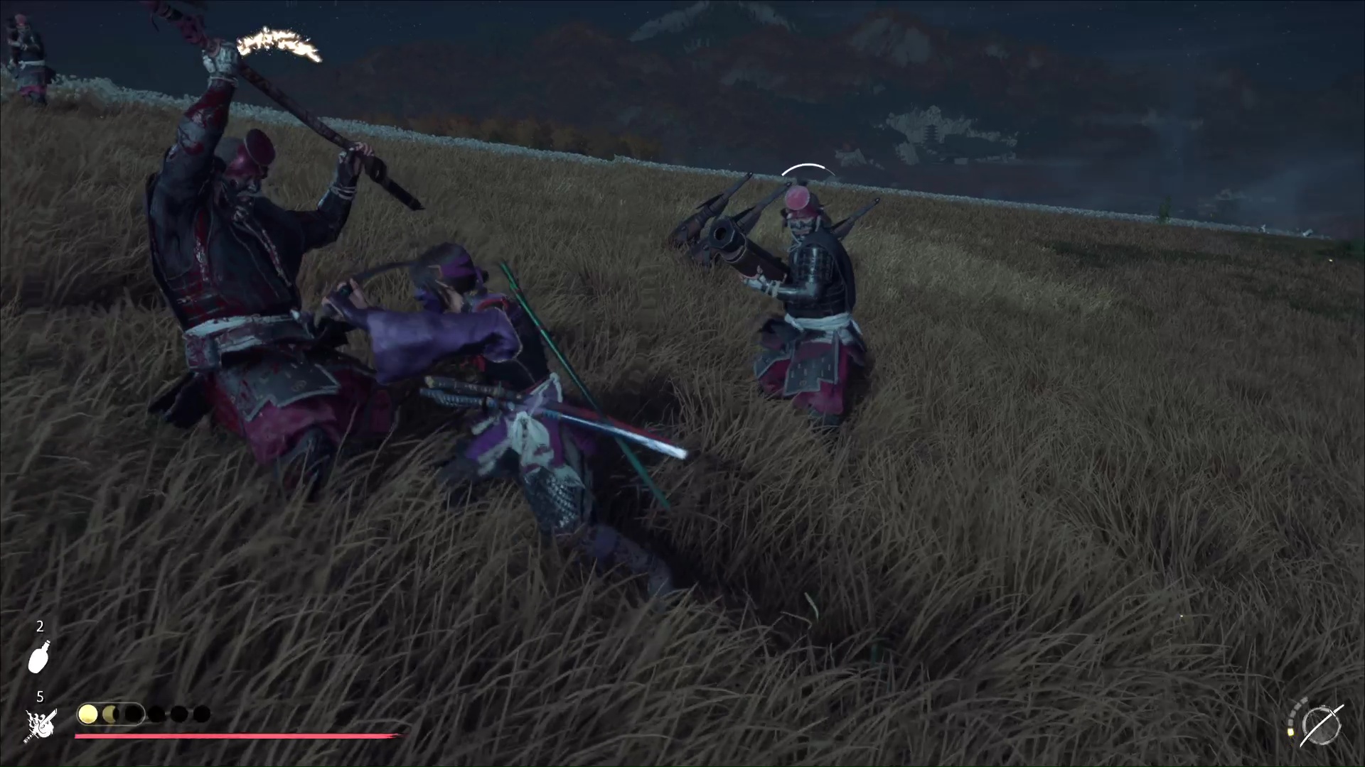 Vous aurez à affronter pas mal de brutes, dont trois tireurs de bō-hiya. Évidemment, utilisez de préférence votre l’ōdachi contre eux et testez votre nouvelle technique. Ne négligez pas non plus les autres adversaires, entre porteurs de lance, tireurs ou encore manieurs de doubles faucilles.