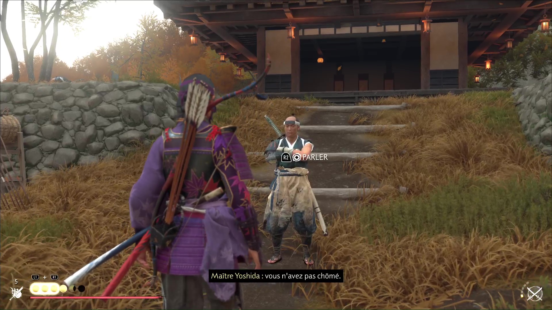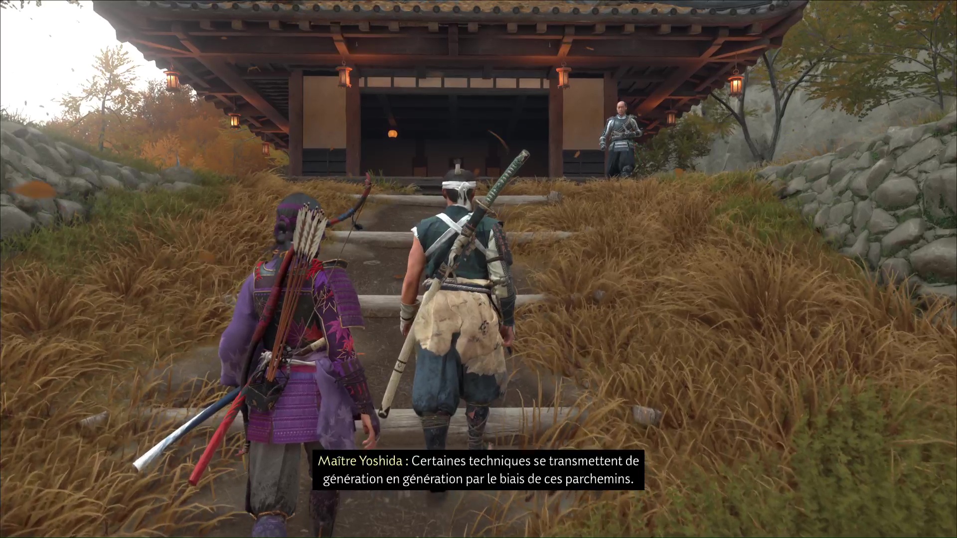 À l’instant où les objectifs du récit de sensei « Le chemin de l’ōdachi » sont complétés, retournez voir maître Yoshida à son dojo. Le voici prêt à vous apprendre de nouvelles choses au sujet de l’odachi. Suivez-le jusqu’à l’intérieur du dojo.