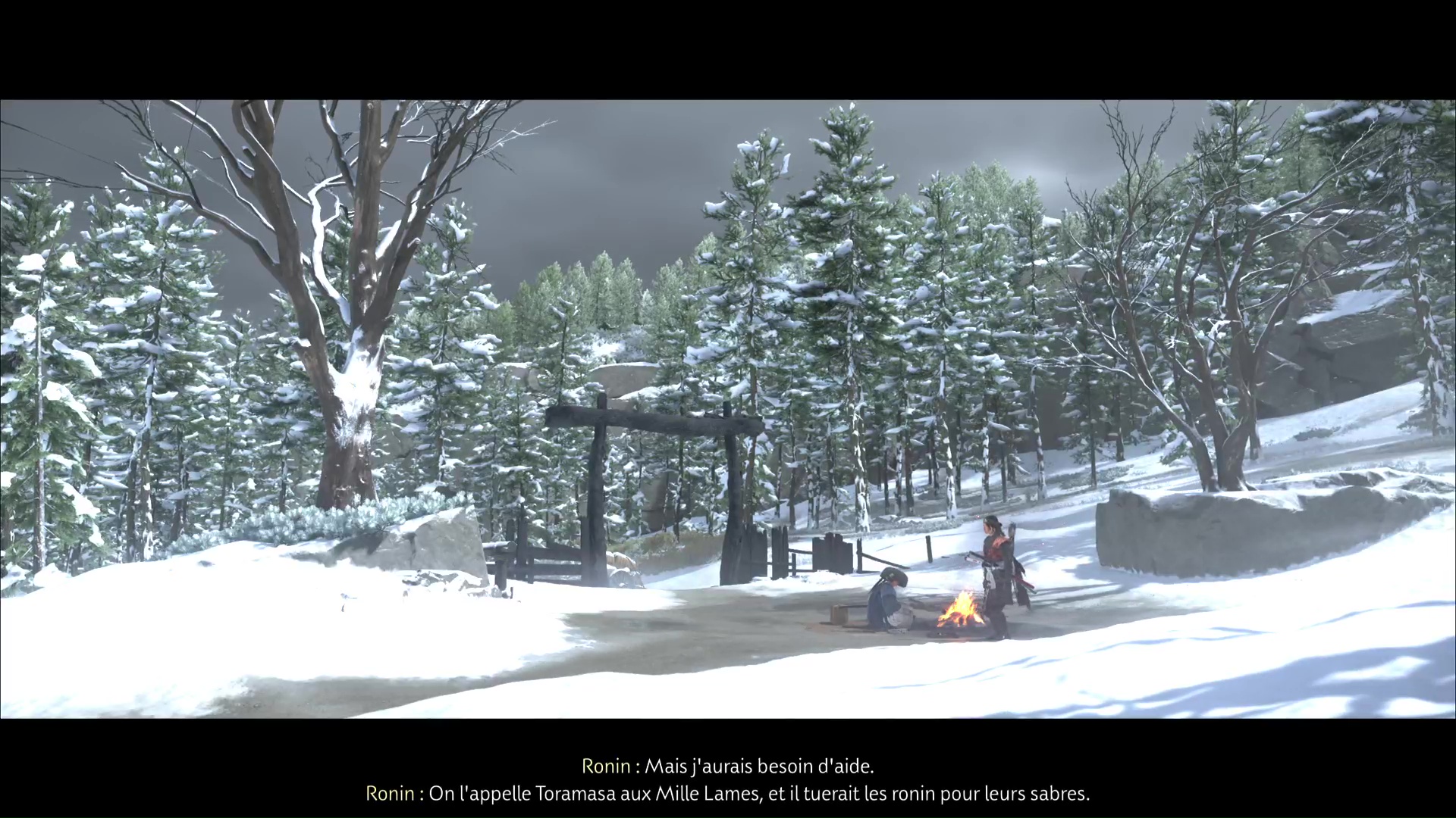 Il vous dira qu’il est sur la piste d’une prime du nom de Toramasa aux Mille Lames, un voleur de sabre. Si vous avez parlé à la voyante, vous pourrez dire au ronin que vous vous méfiez.