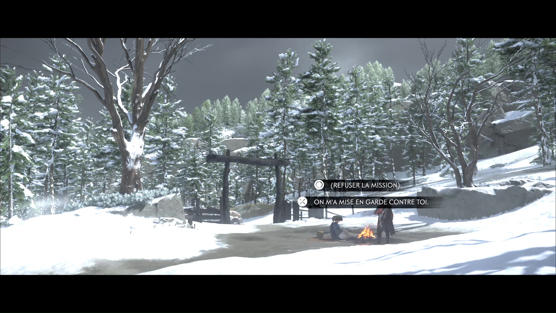 Pas de récompense à proprement parler, mais fouillez les corps et le camp pour récupérer des pièces et des ressources. Vous pouvez aussi retourner voir la voyante pour lui raconter vos péripéties, mais ce n’est pas obligatoire pour terminer le récit.