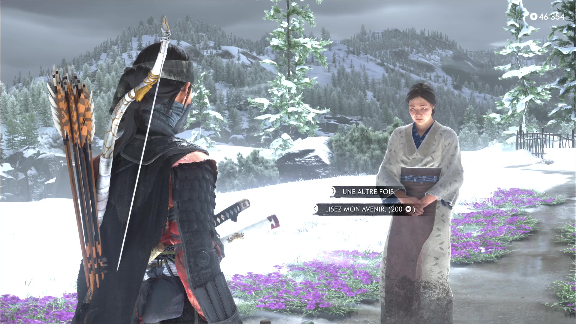 Notez que cette quête peut aussi se lancer automatiquement à partir du moment où vous avez découpé les bambous d’entraînement d’Hakodake. Une voyante viendra alors vers vous en vous proposant de lire votre avenir.