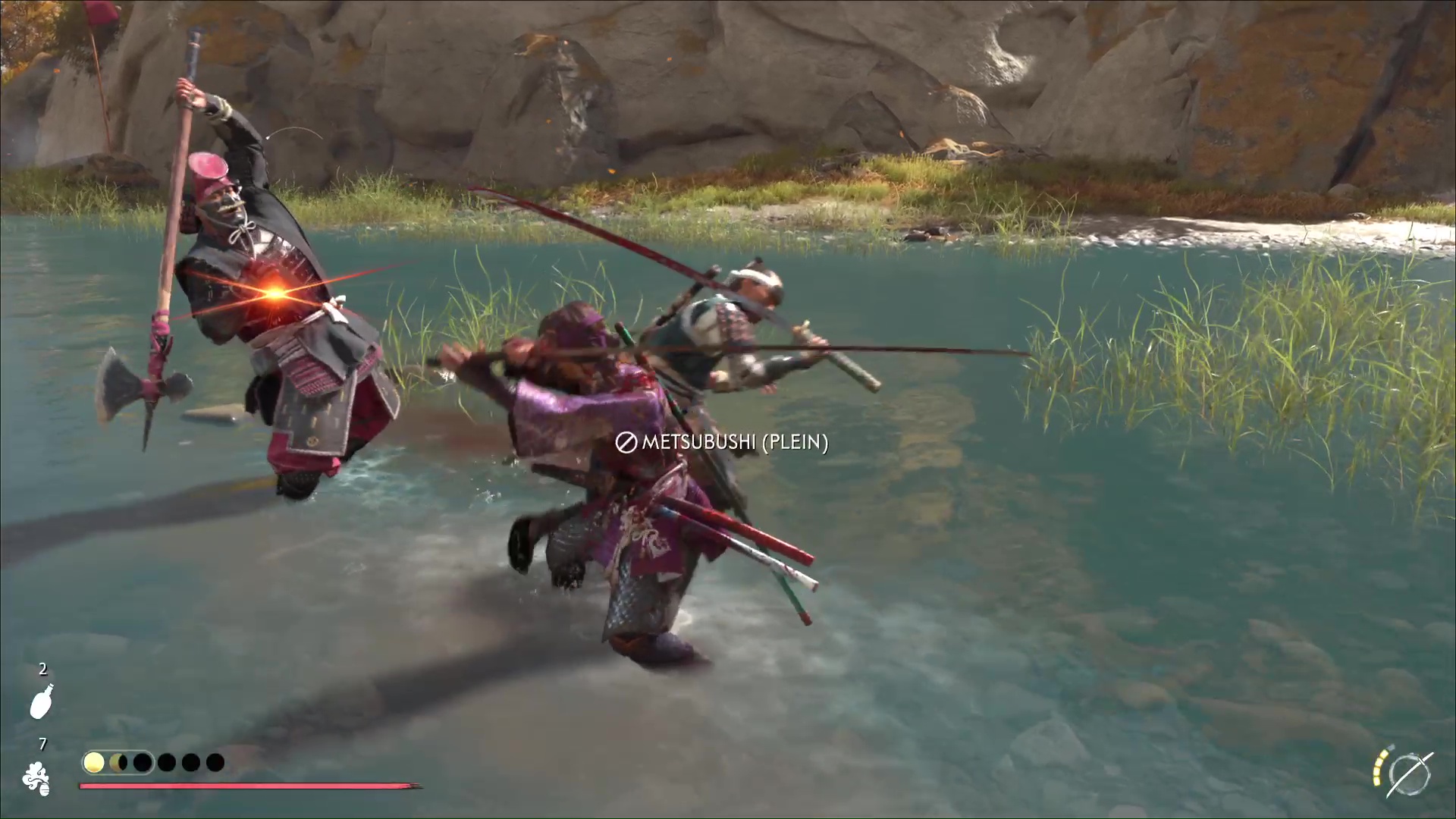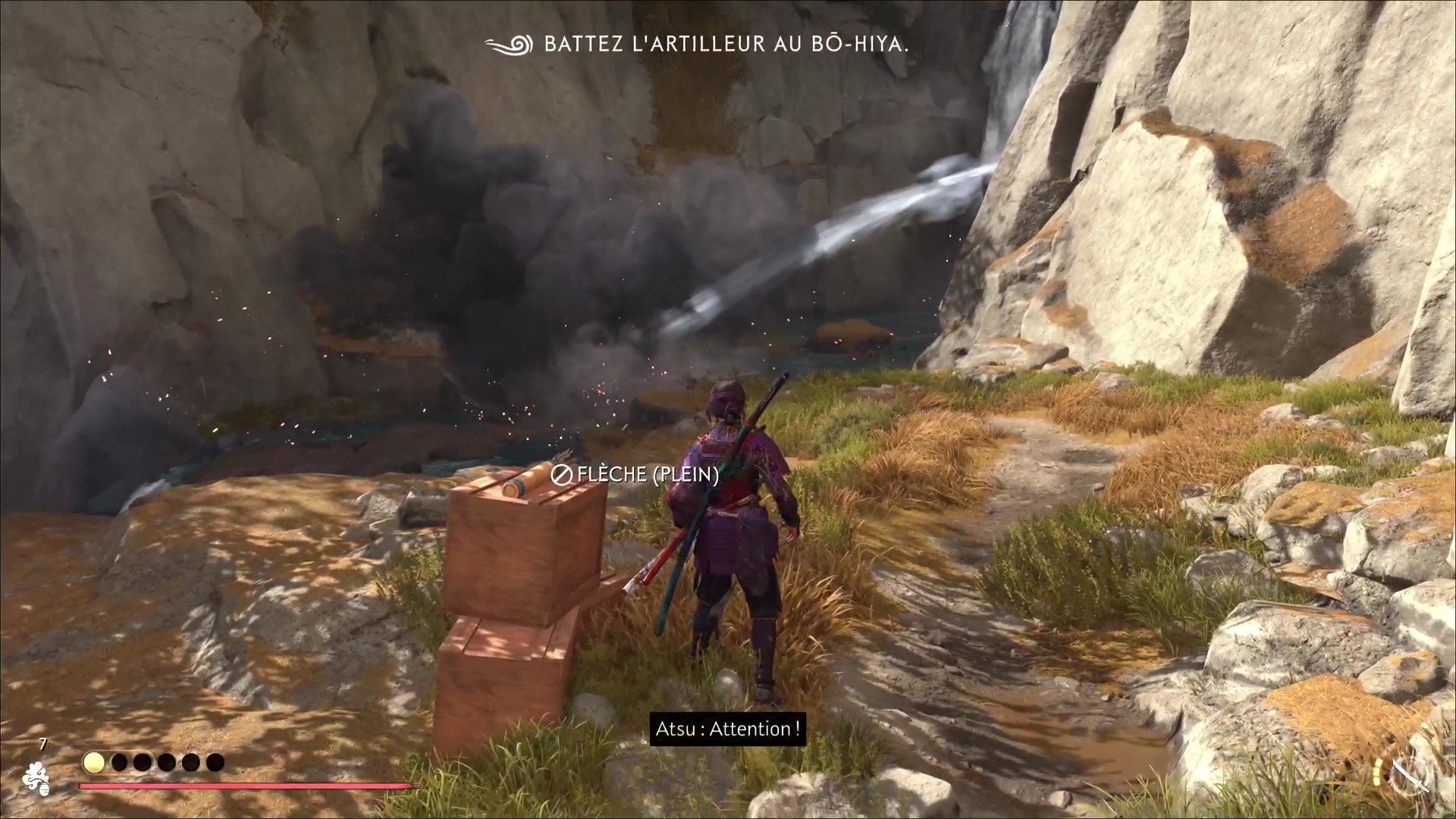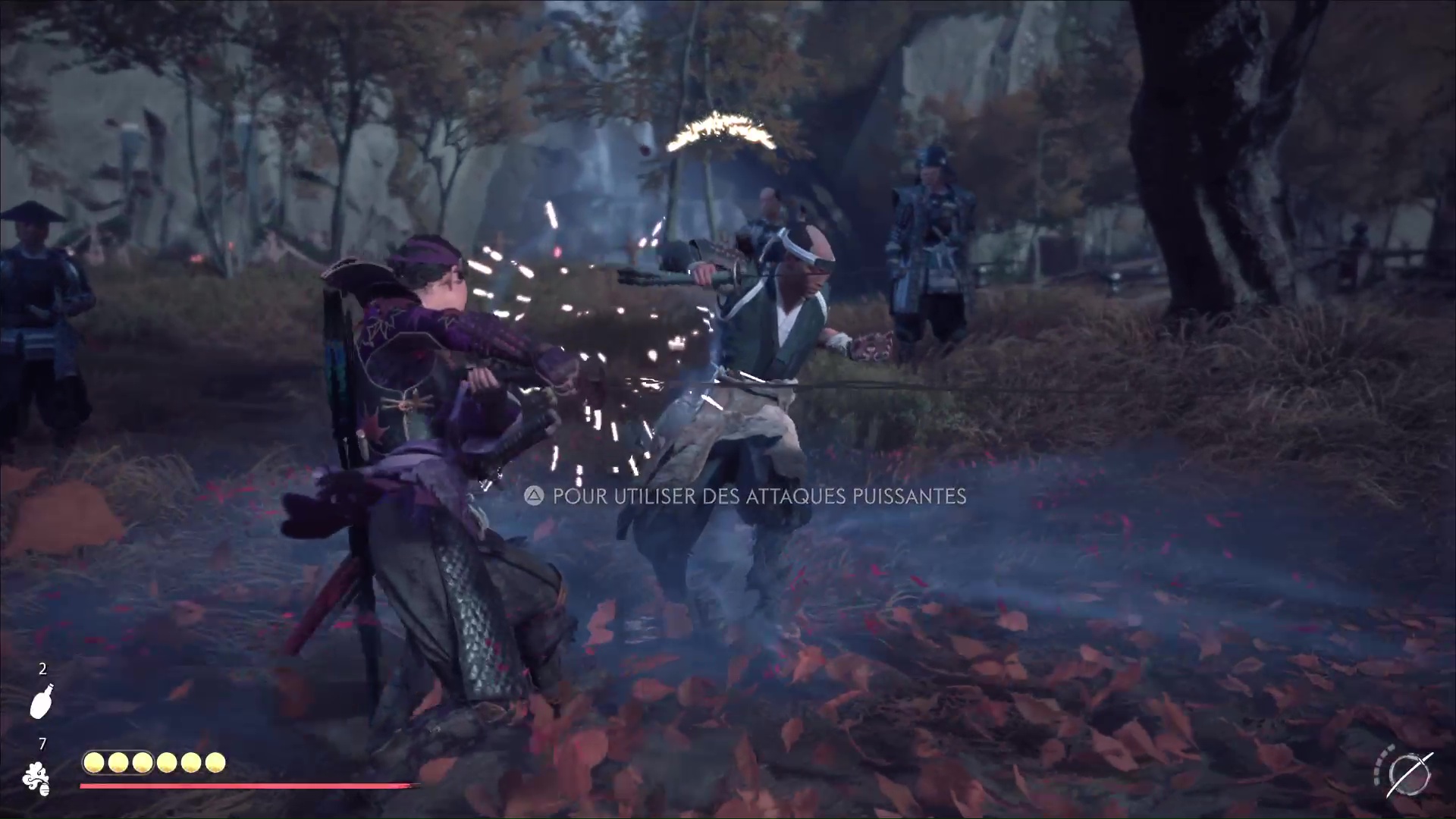 Le but est de maintenir la touche d’attaque lourde enfoncée, puis de la relâcher près d’un adversaire. Atsu fera alors une charge qui le déséquilibrera. Maintenant que vous connaissez une nouvelle technique, éliminez la vague d’ennemis suivante.