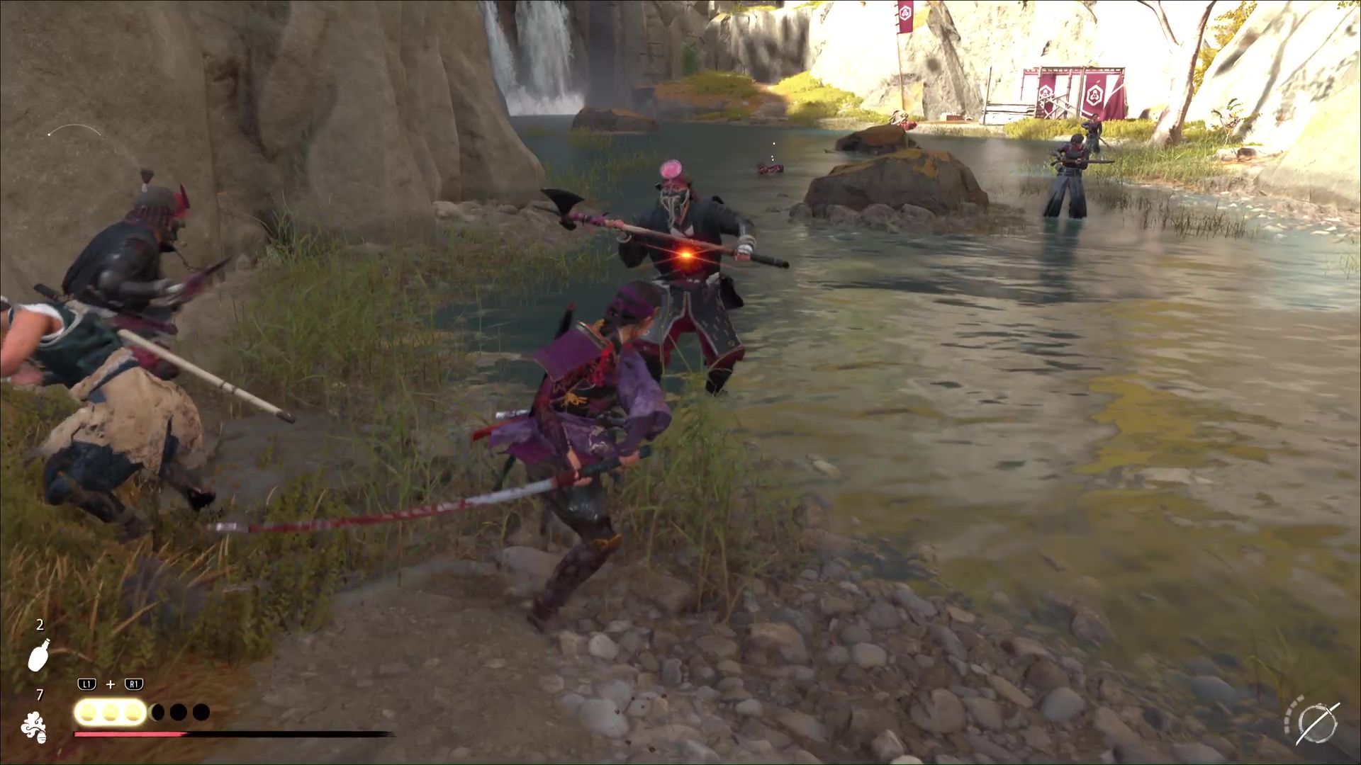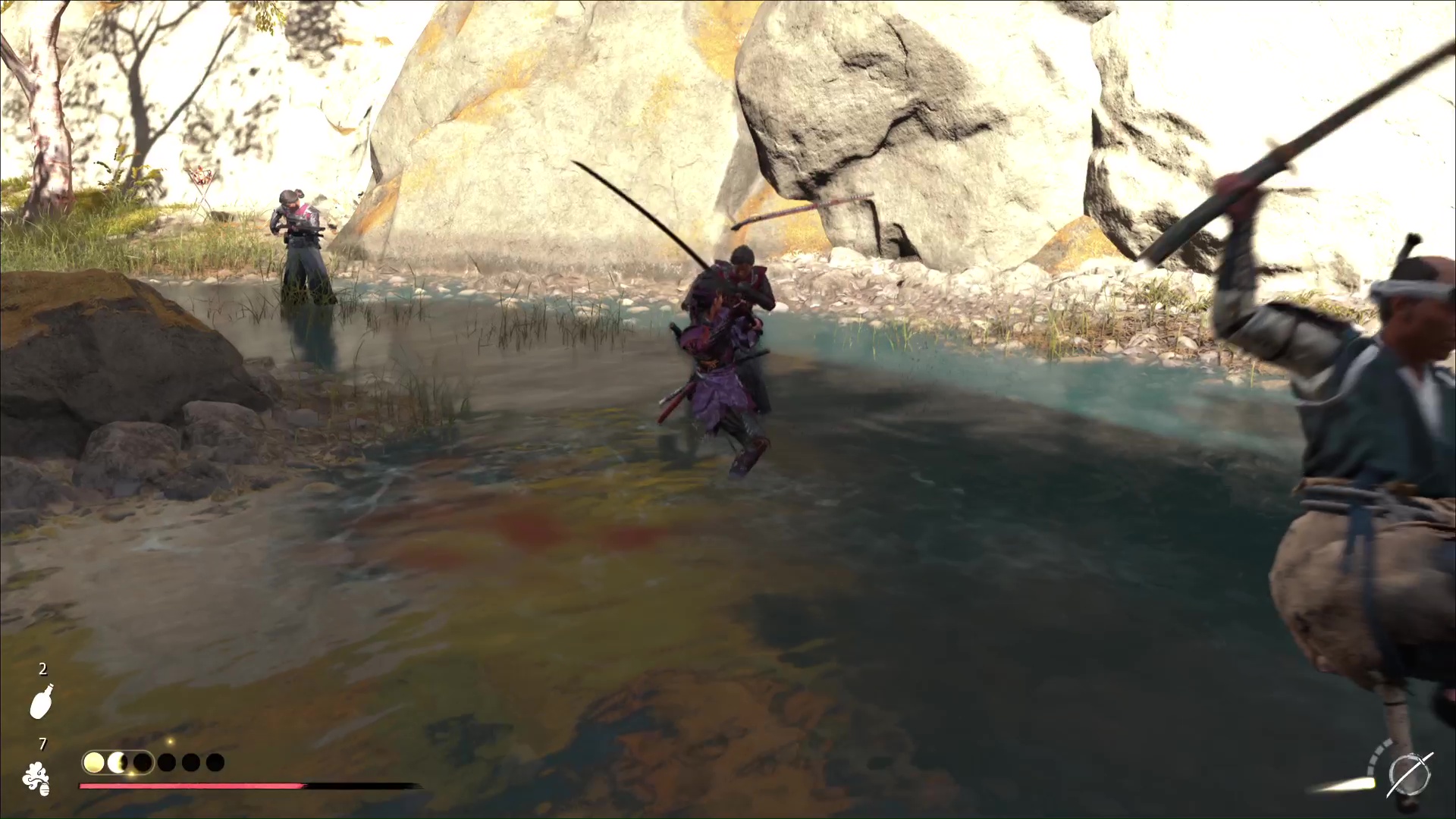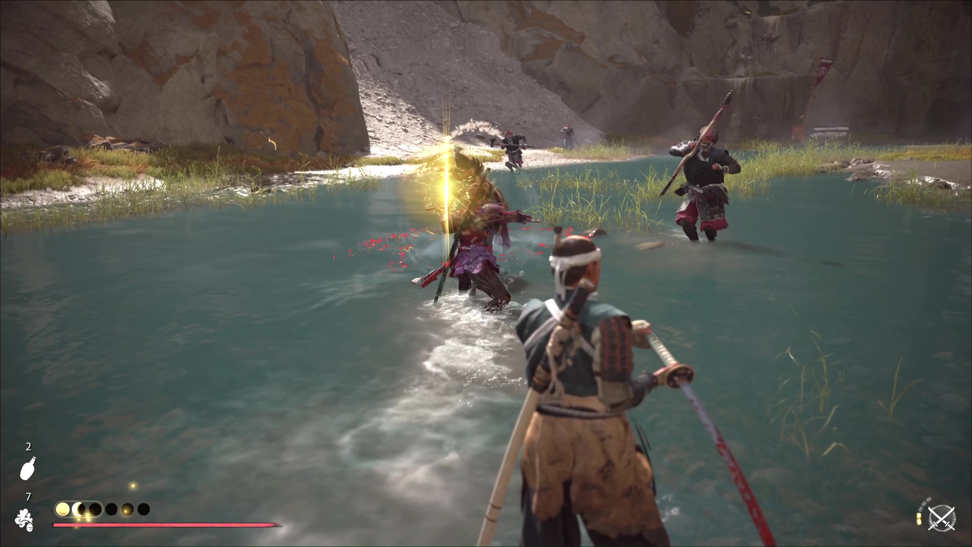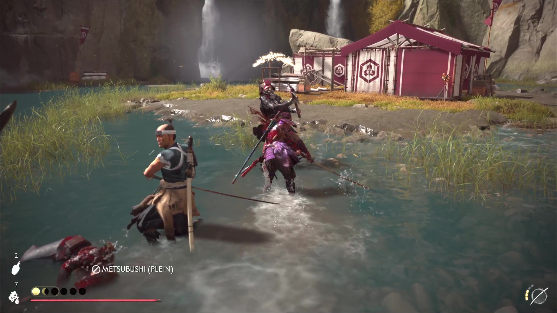 Le but est de maintenir la touche d’attaque lourde enfoncée, puis de la relâcher près d’un adversaire. Atsu fera alors une charge qui le déséquilibrera. Maintenant que vous connaissez une nouvelle technique, éliminez la vague d’ennemis suivante.