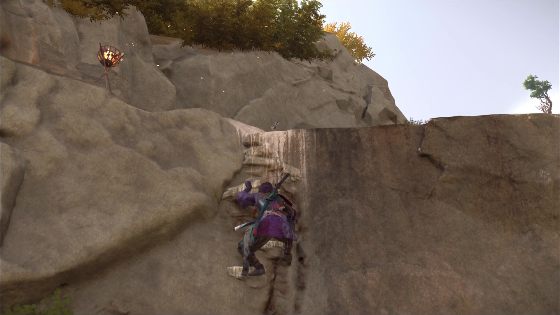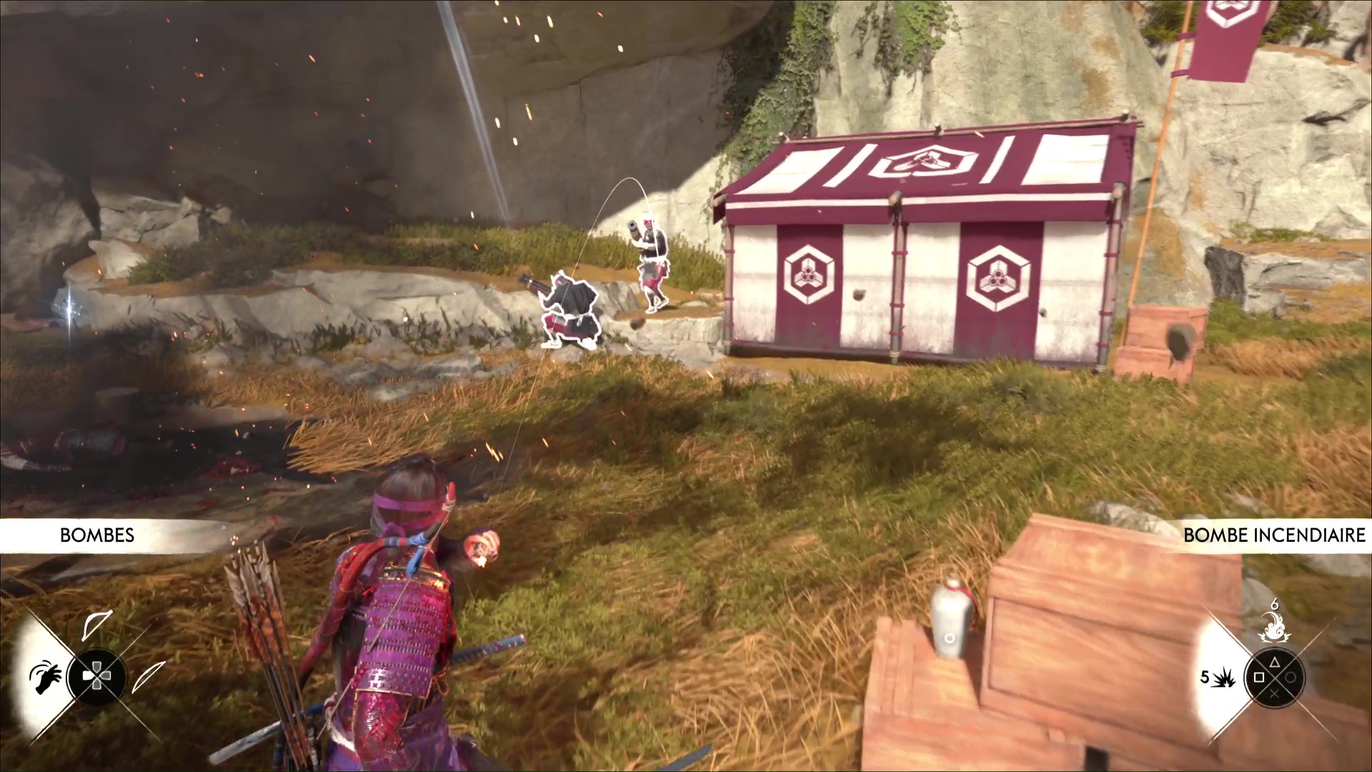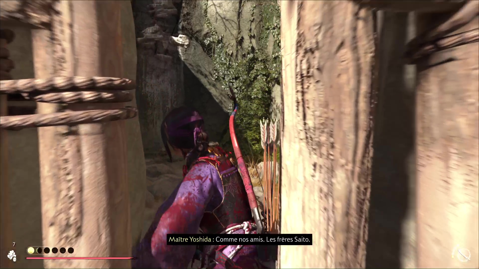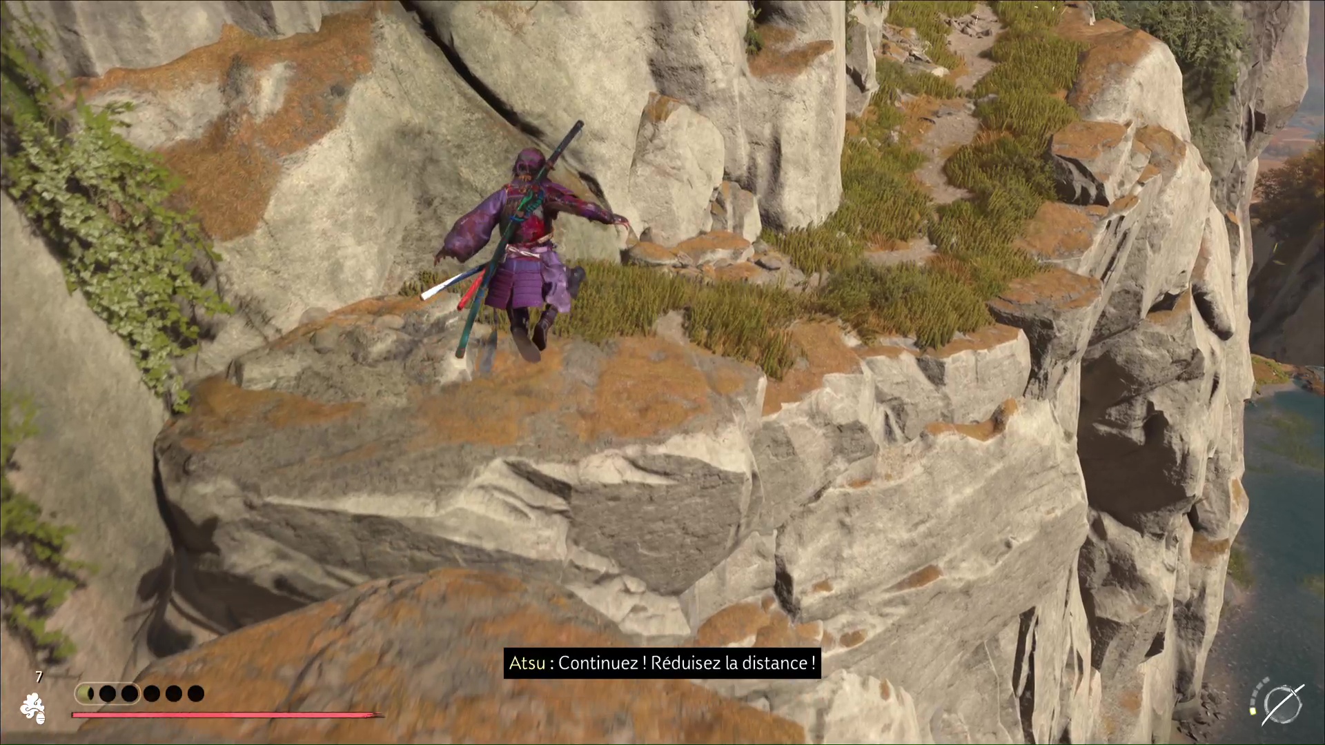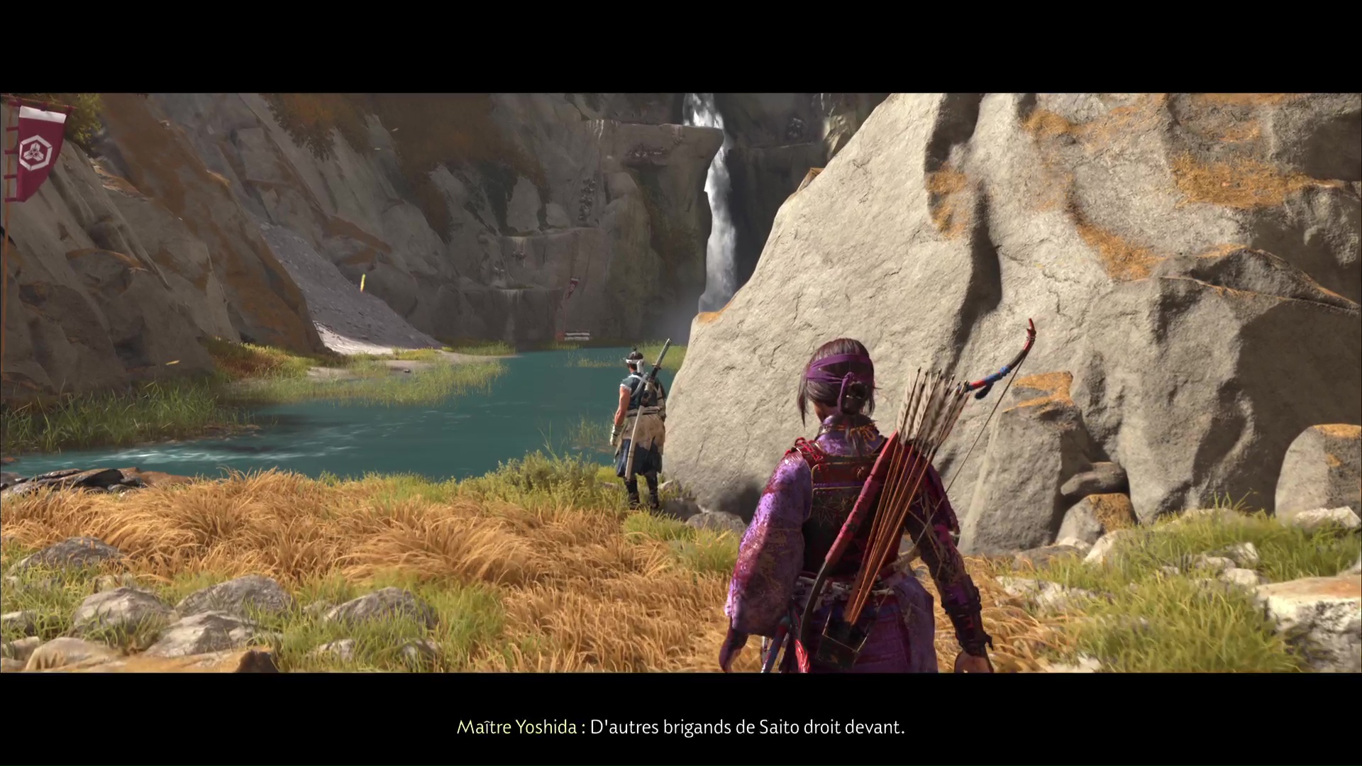 Puis, de l’autre côté, escaladez de nouvelles prises rocheuses. Une fois hissé en haut, vous apercevez un premier camp de hors-la-loi de Saito.